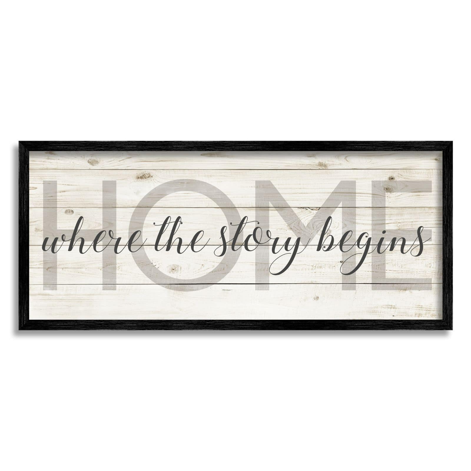 Stupell Industries Story Begins Family Home Inspirational Word Textured Wood Design Framed Wall Art