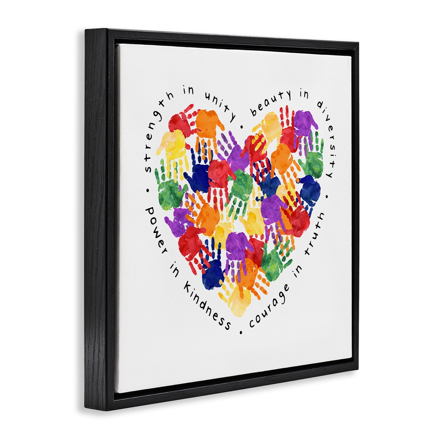 Stupell Industries Strength In Unity Handprint Heart Framed Floater Canvas Wall Art
