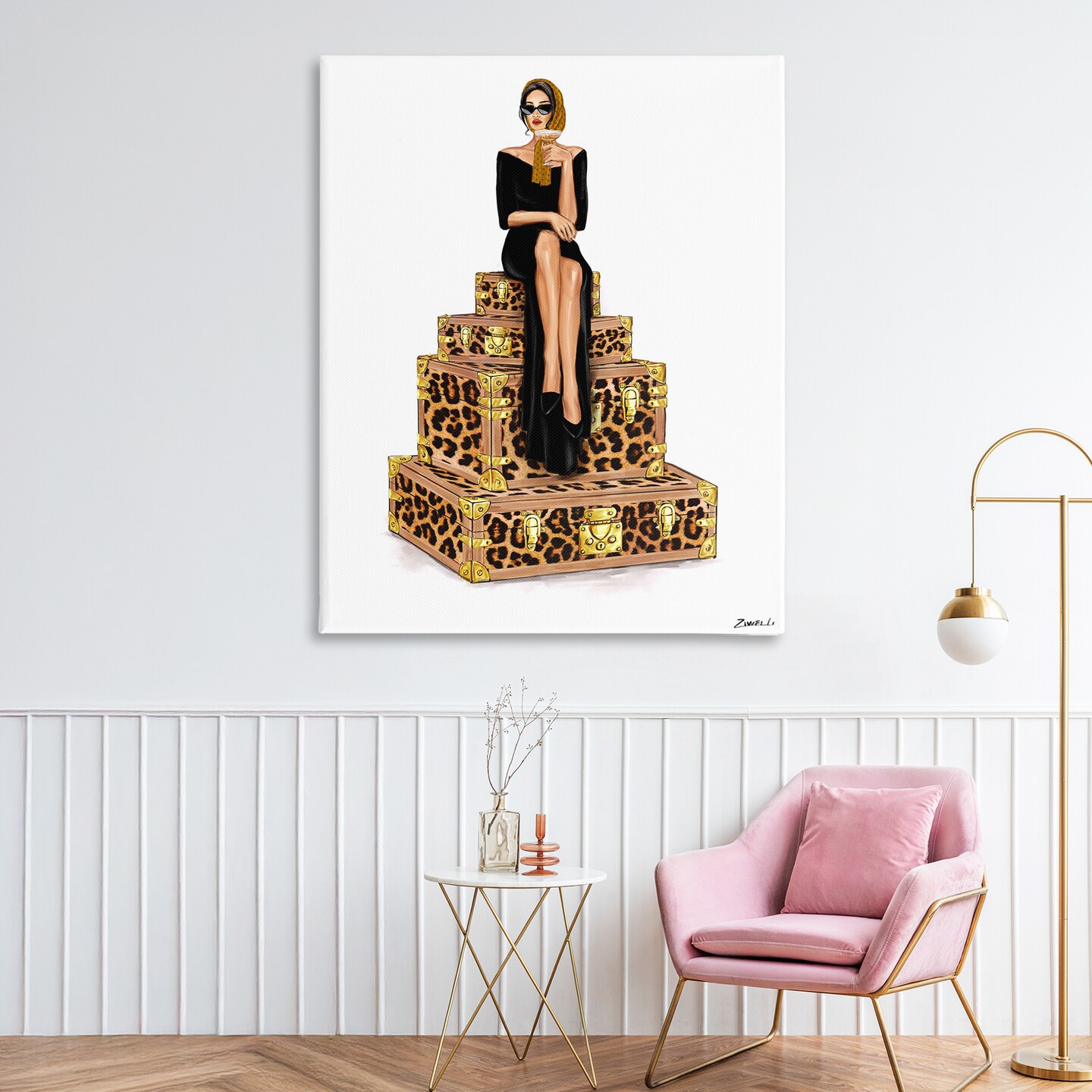Stupell Industries Stylish Gal and Suitcases Canvas, design by Ziwei Li