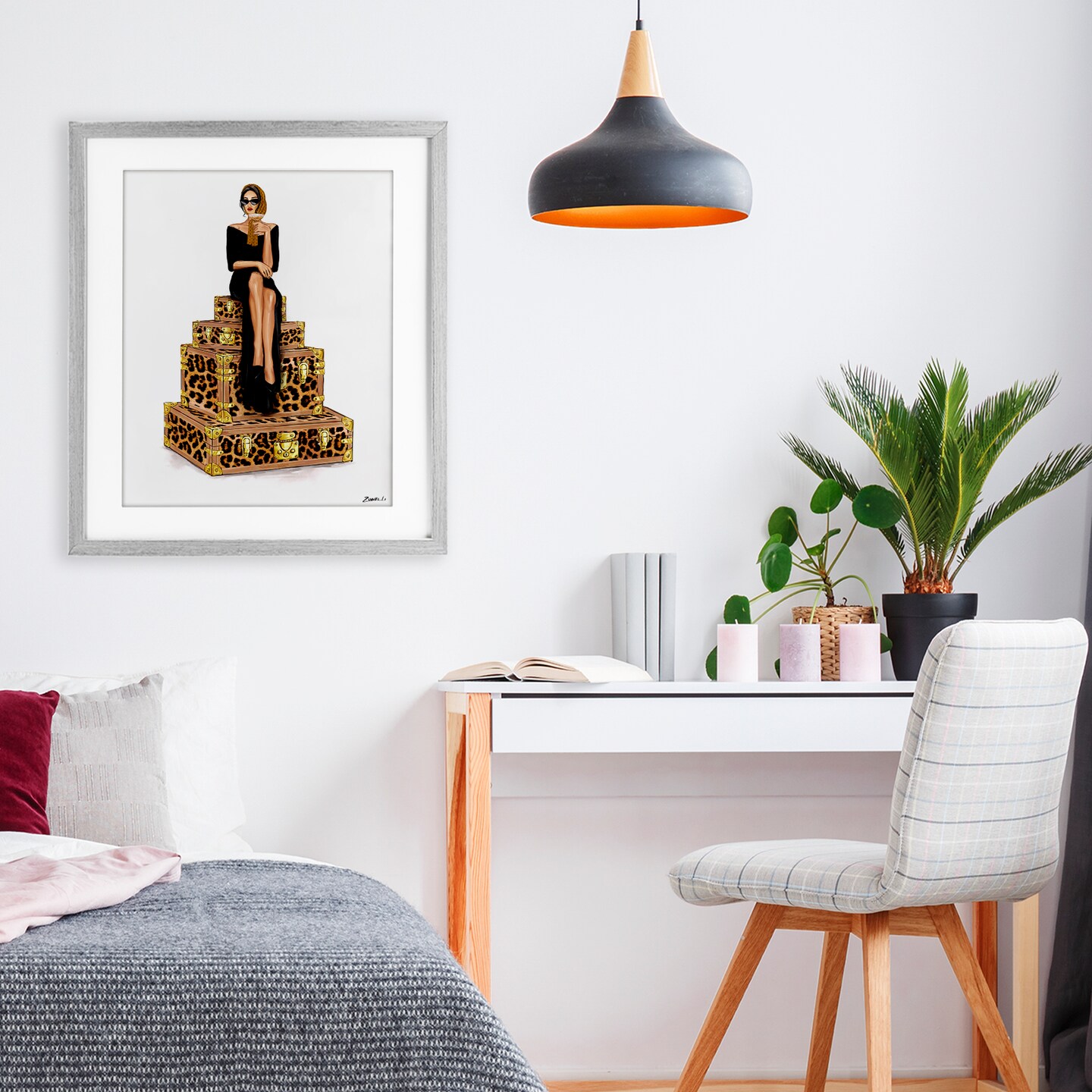 Stupell Industries Stylish Gal and Suitcases Framed Print Under Glass, design by Ziwei Li