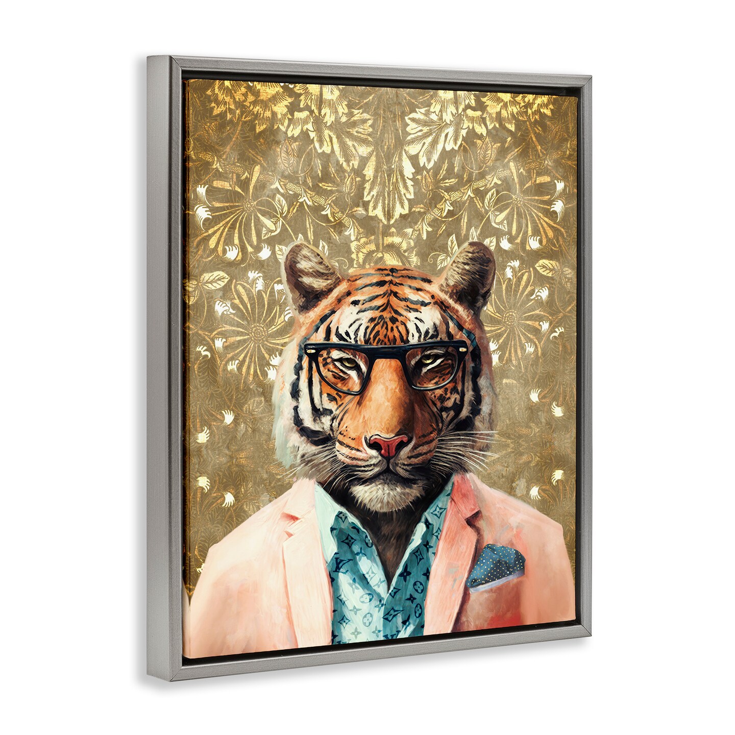 Stupell Industries Stylish Tiger Gold Wall Floater Framed Canvas Wall Art Design by Svetlana Aleynikova