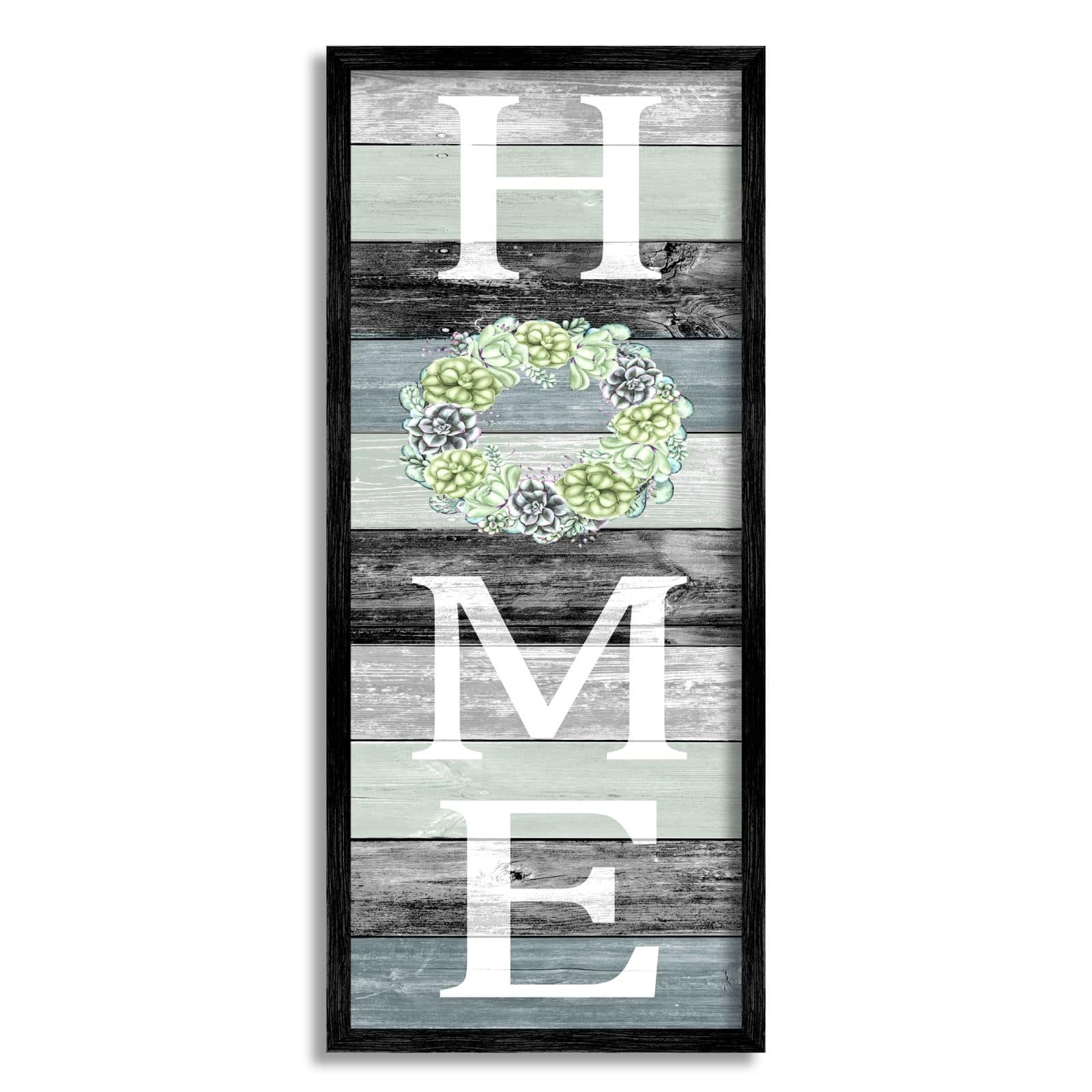 Stupell Industries Succulent Wreath Welcome Home Sign Green Black Framed Wall Art