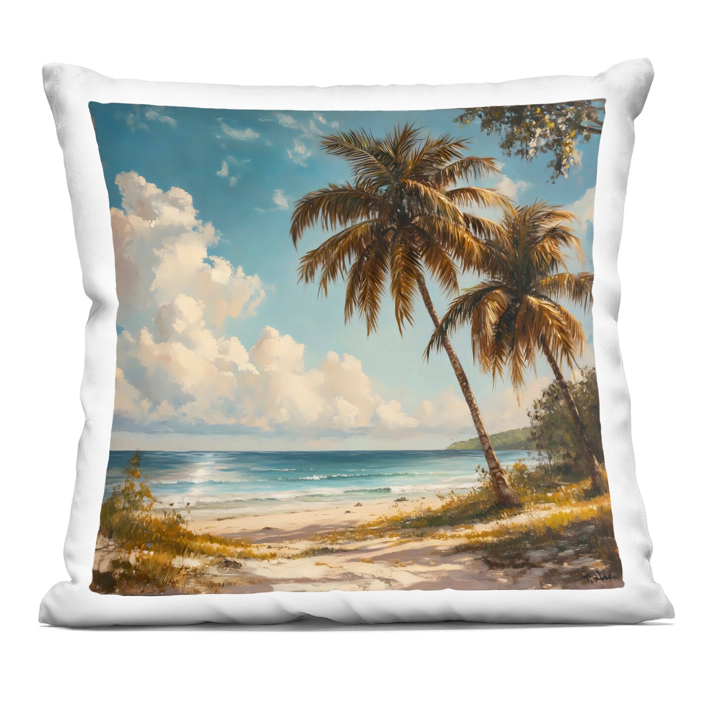 Stupell Industries Summer Beach with Two Palms Decorative Printed Throw Pillow, design by LSR Creative Studio, 18 x 7 x 18