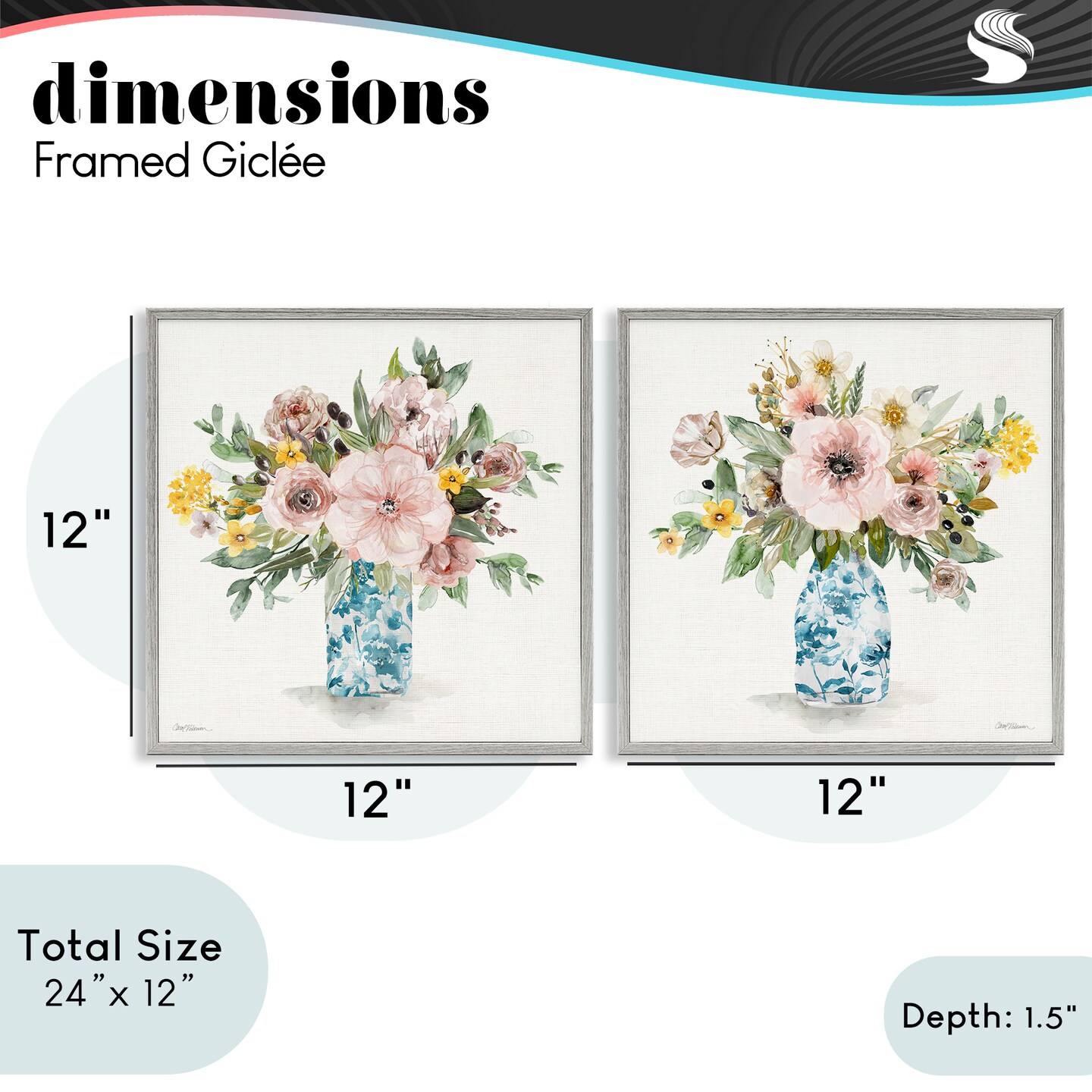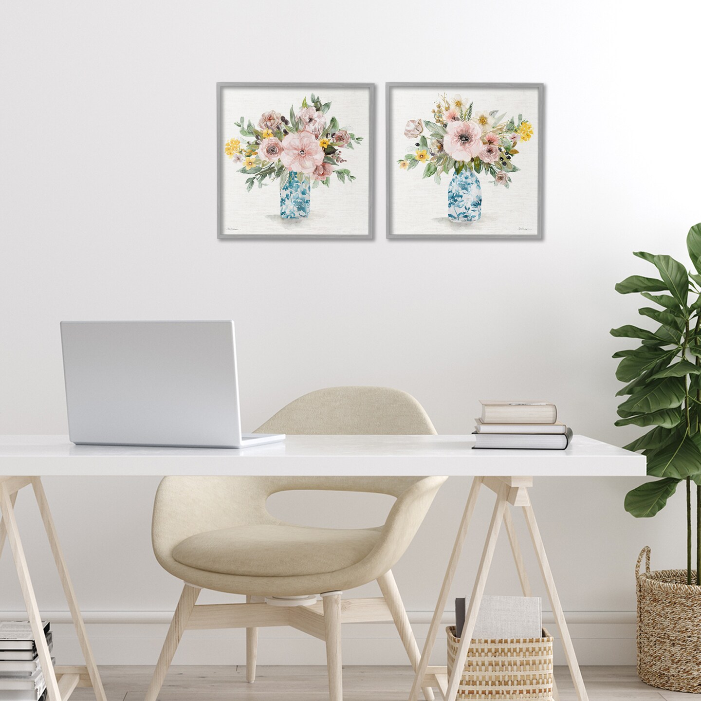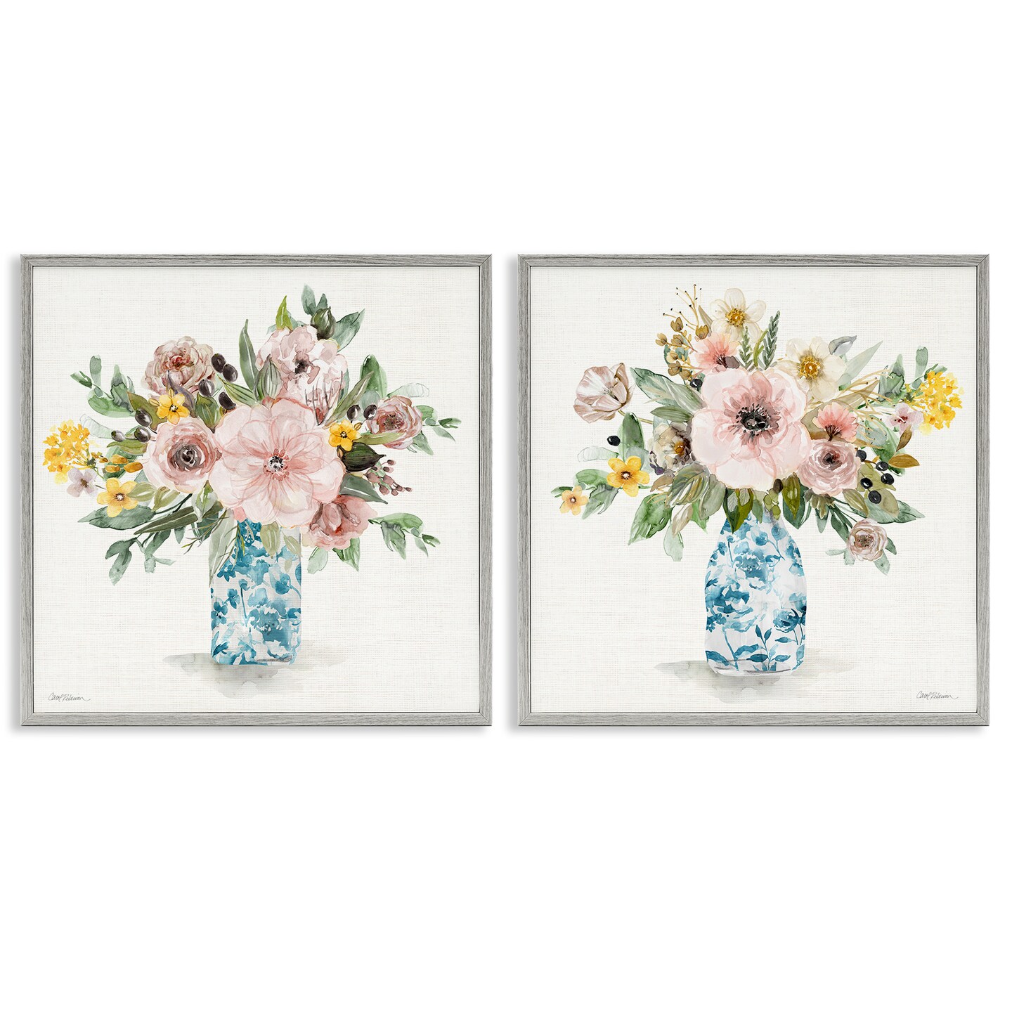 Stupell Industries Summer Chinoiserie Flowers 2pc Framed Giclee Set, design by Carol Robinson