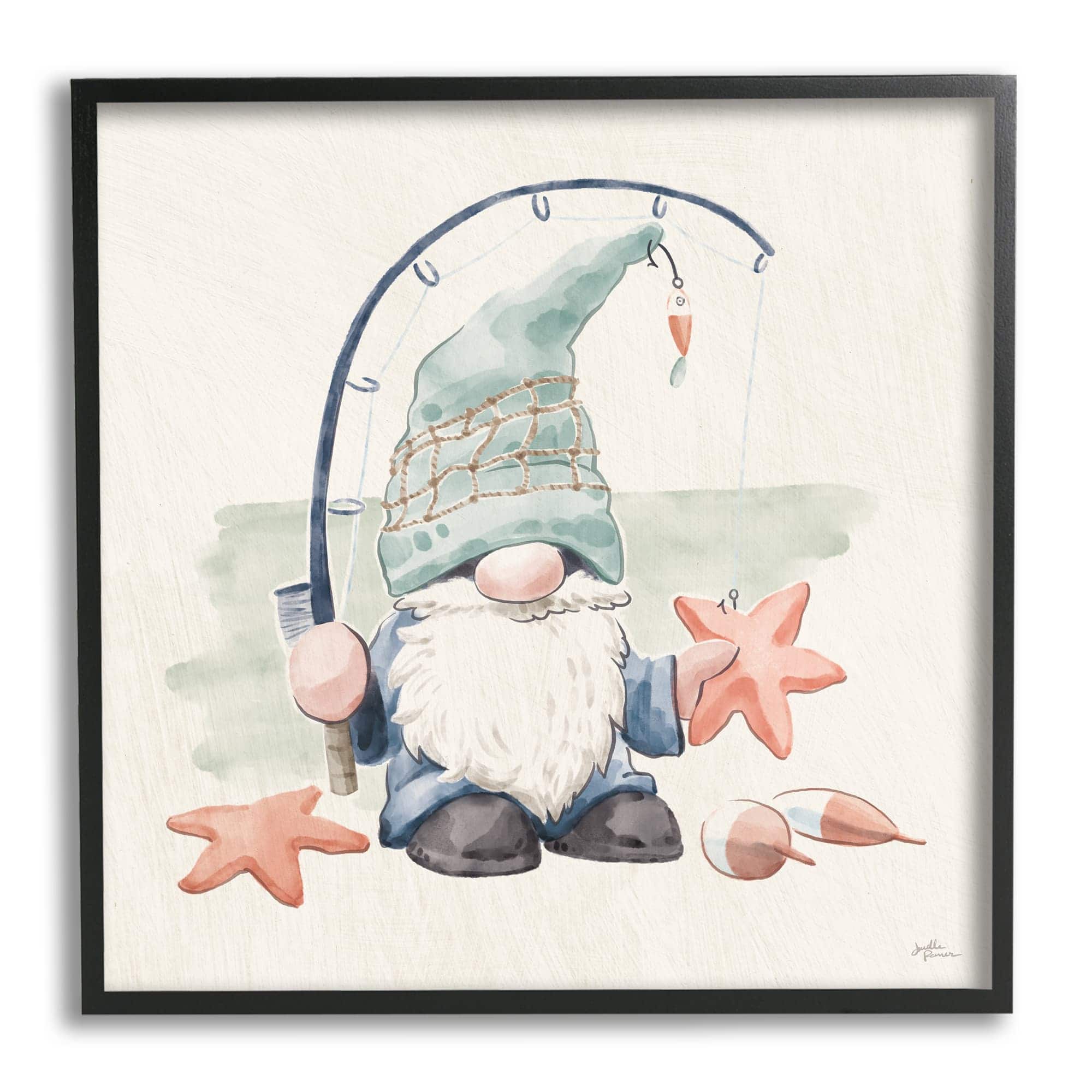 Stupell Industries Summer Fisherman Gnome Holding Starfish Framed Giclee Art
