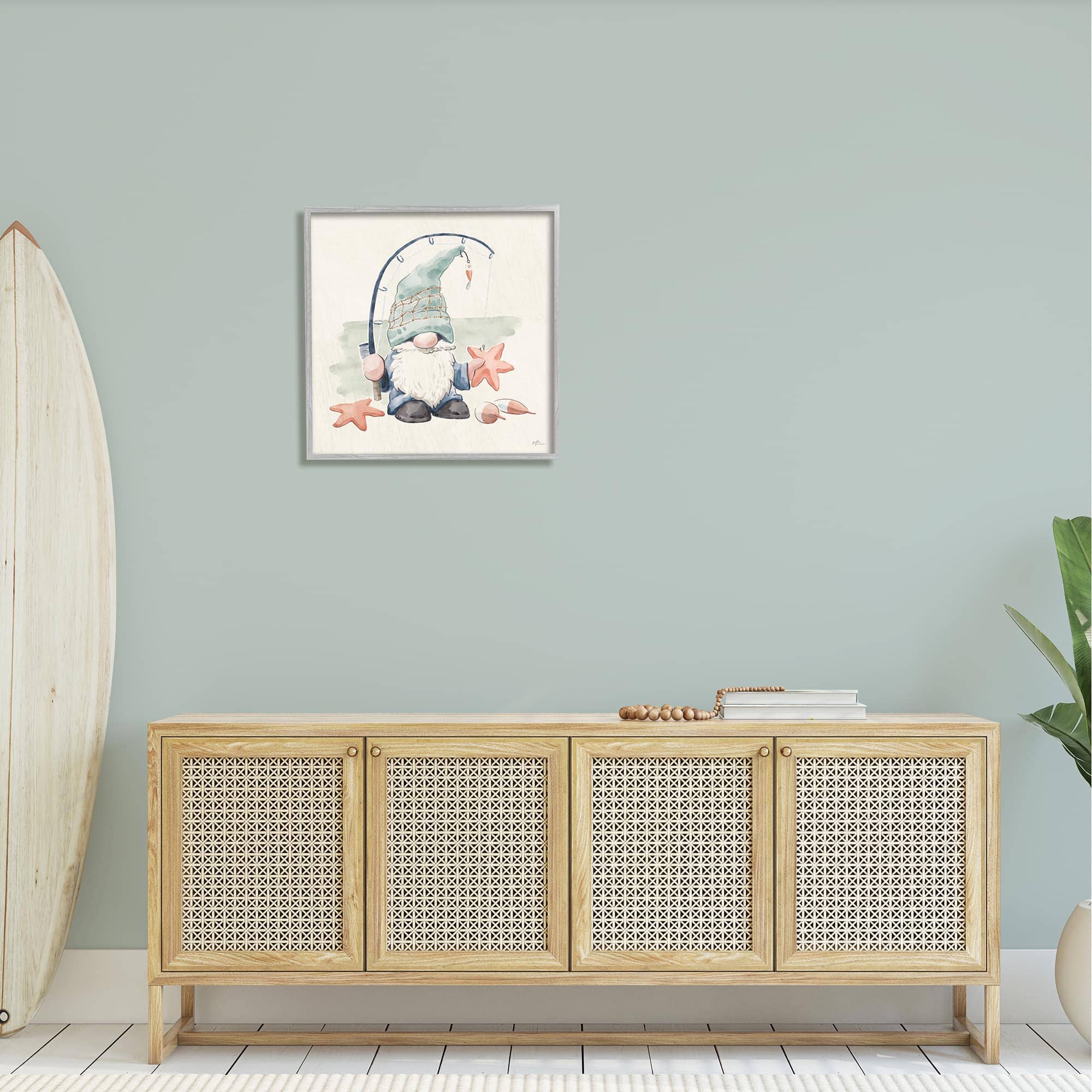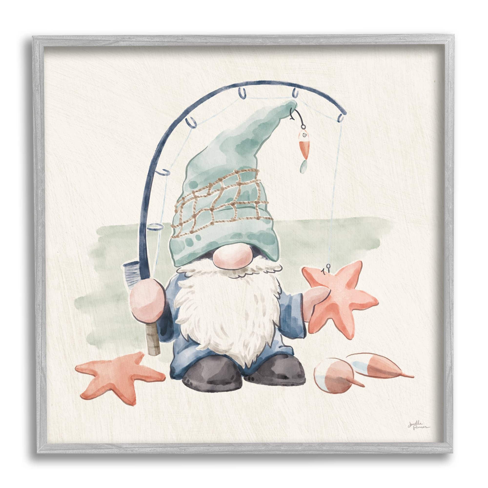 Stupell Industries Summer Fisherman Gnome Holding Starfish Framed Giclee Art