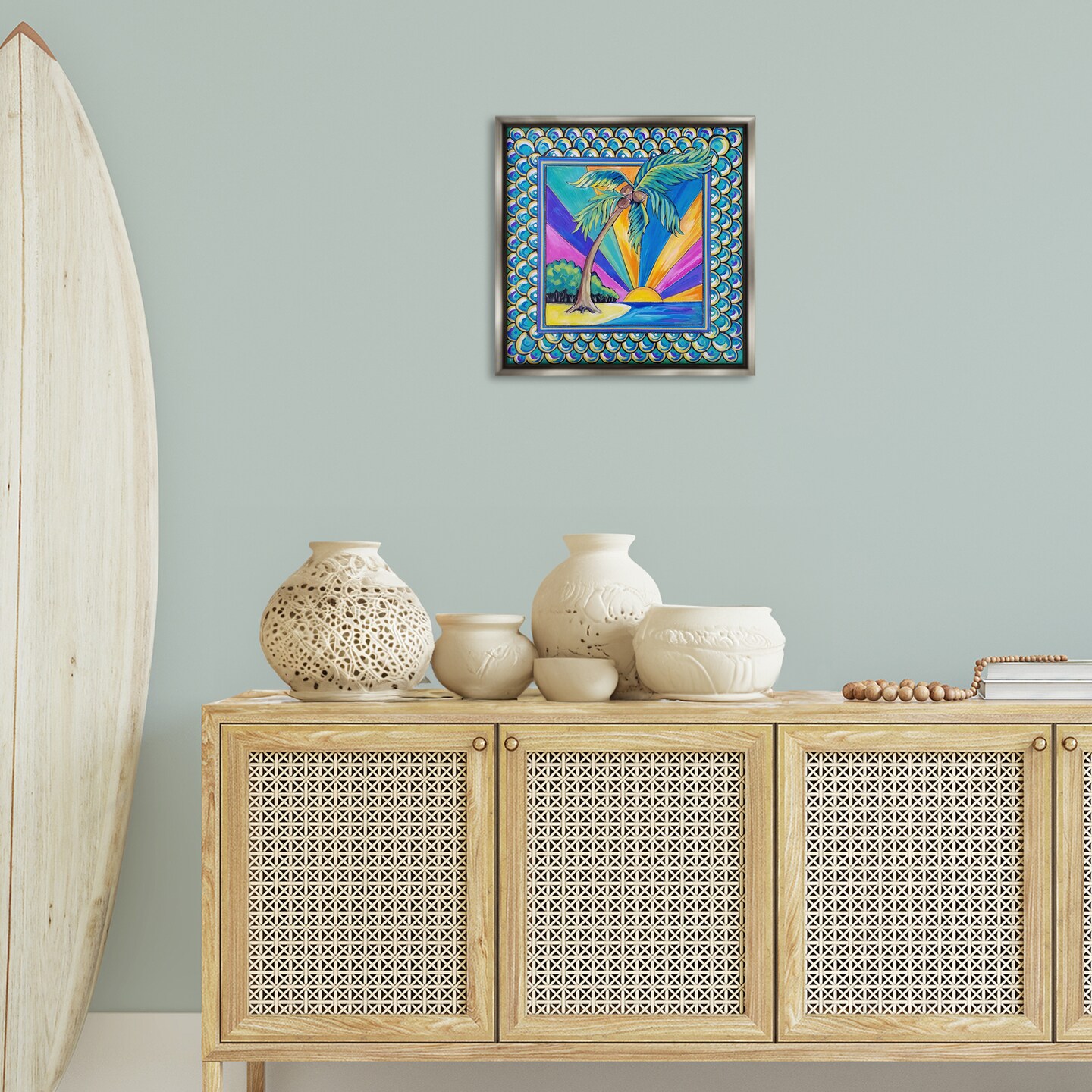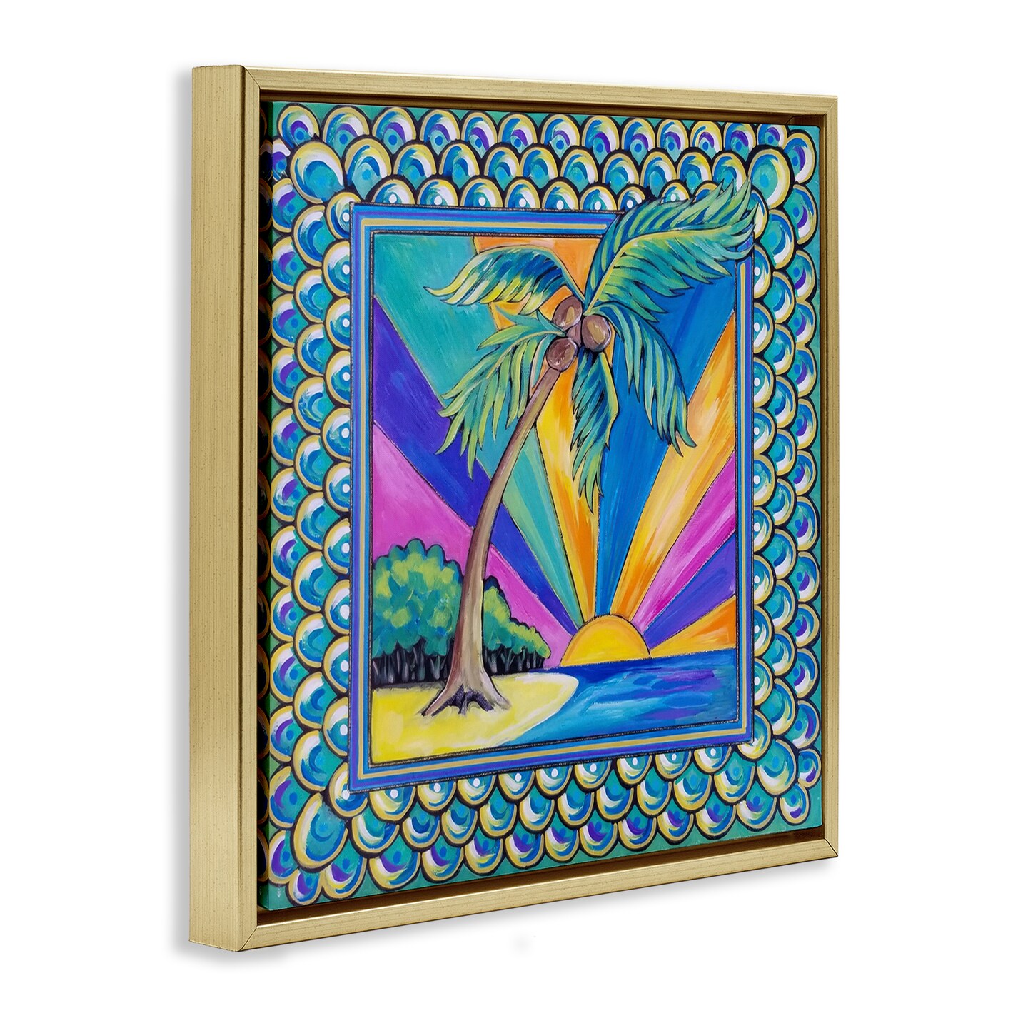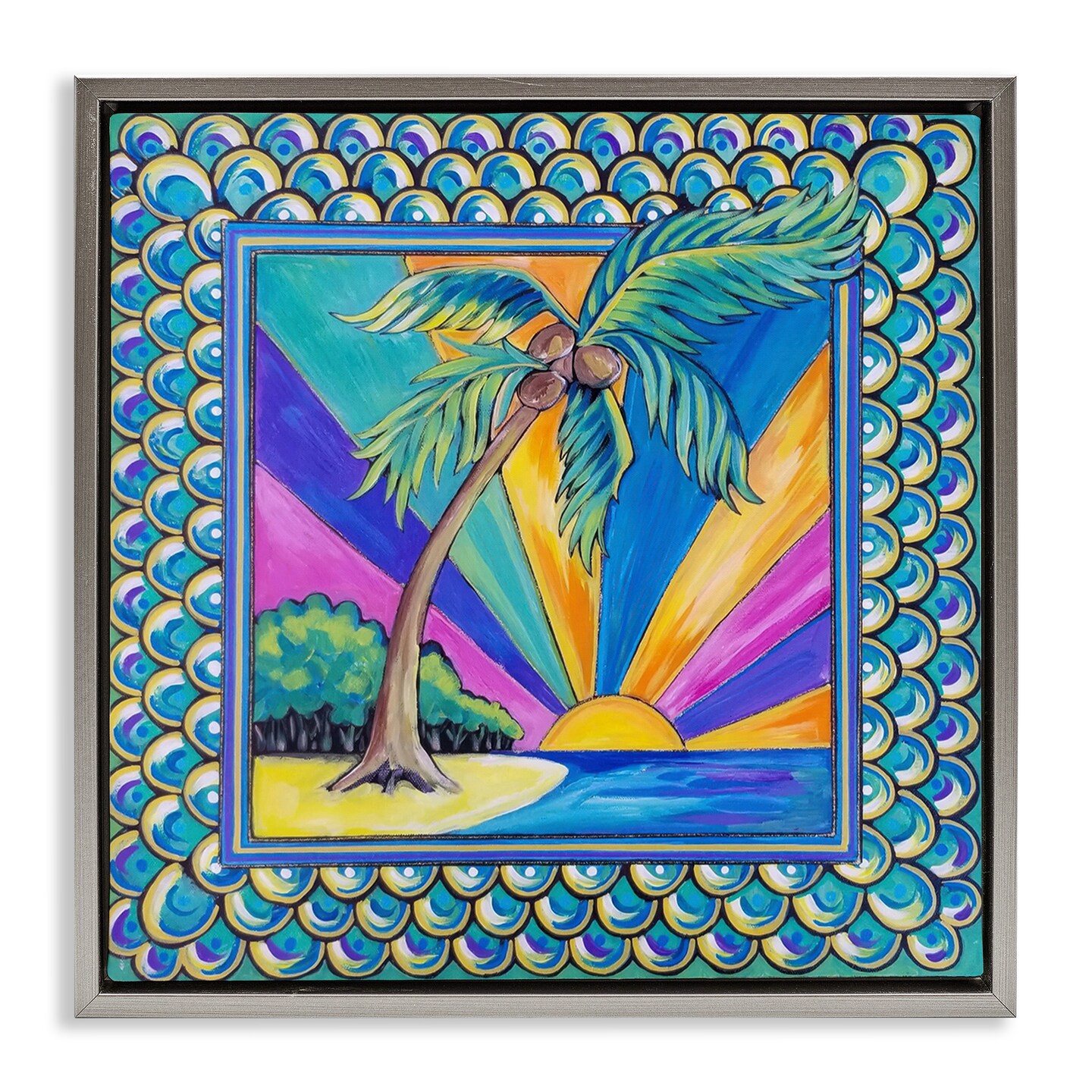 Stupell Industries Sun Rays & Palm Tree with Border Floating Frame By Nettie Price