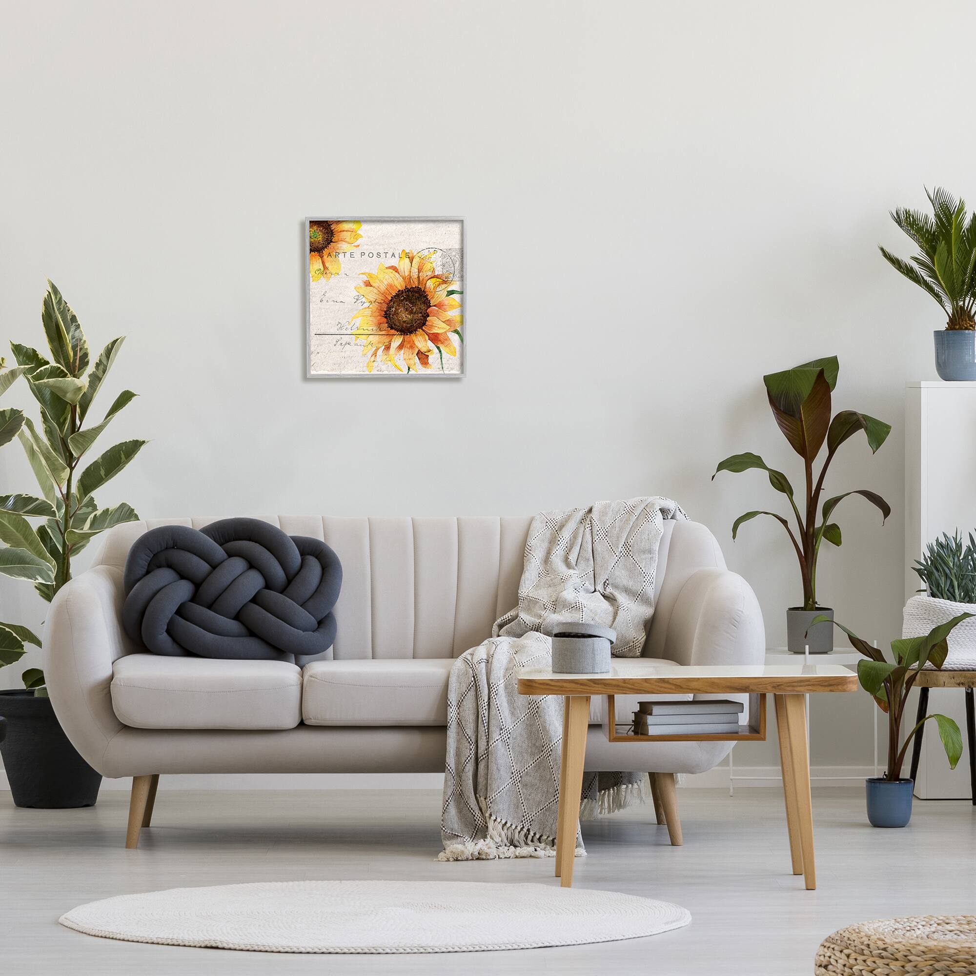 Stupell Industries Sunflower Illustration over Vintage Mail Post in Gray Frame Wall Art