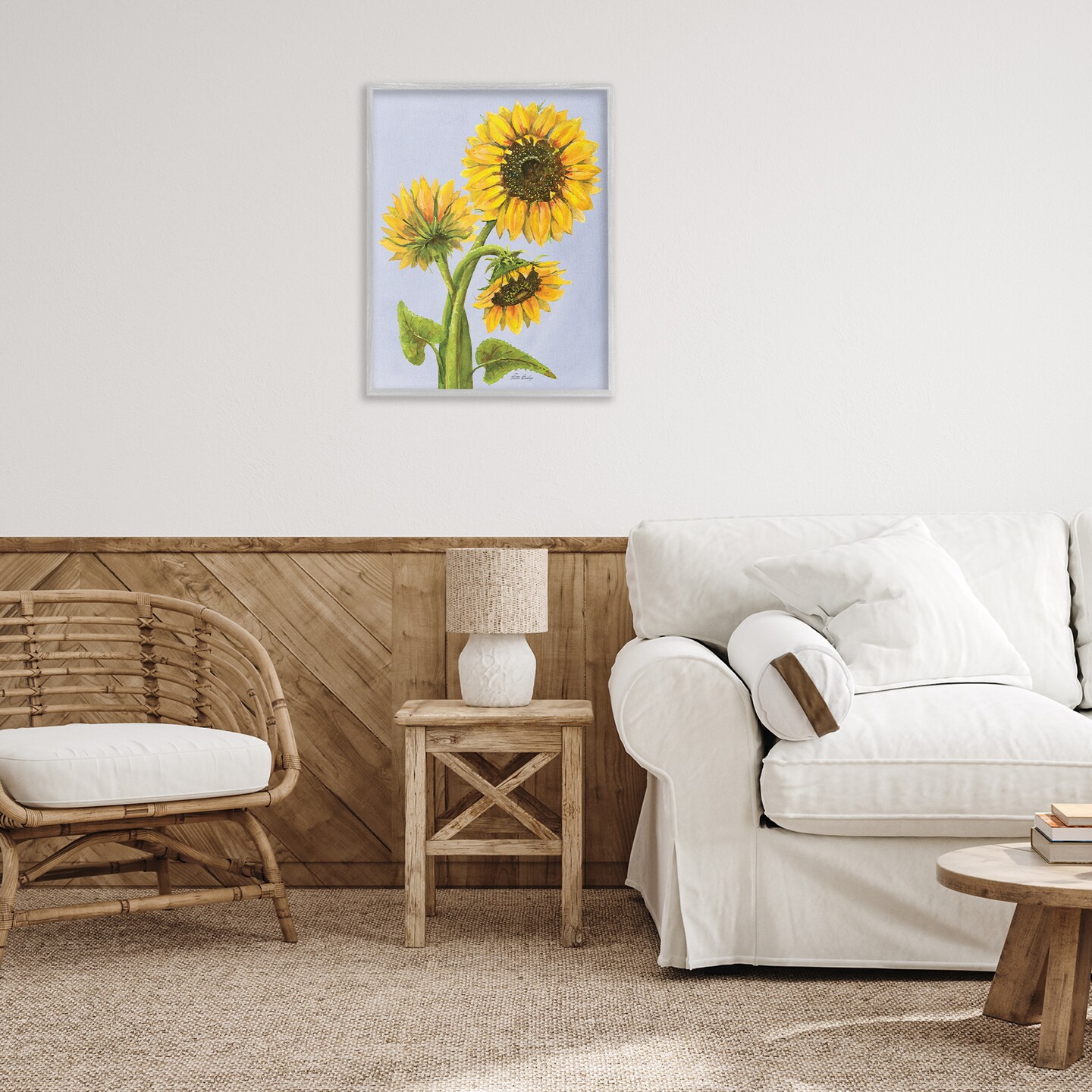 Stupell Industries Sunflower Trio Against Blue Framed Giclee, design by Patti Bishop