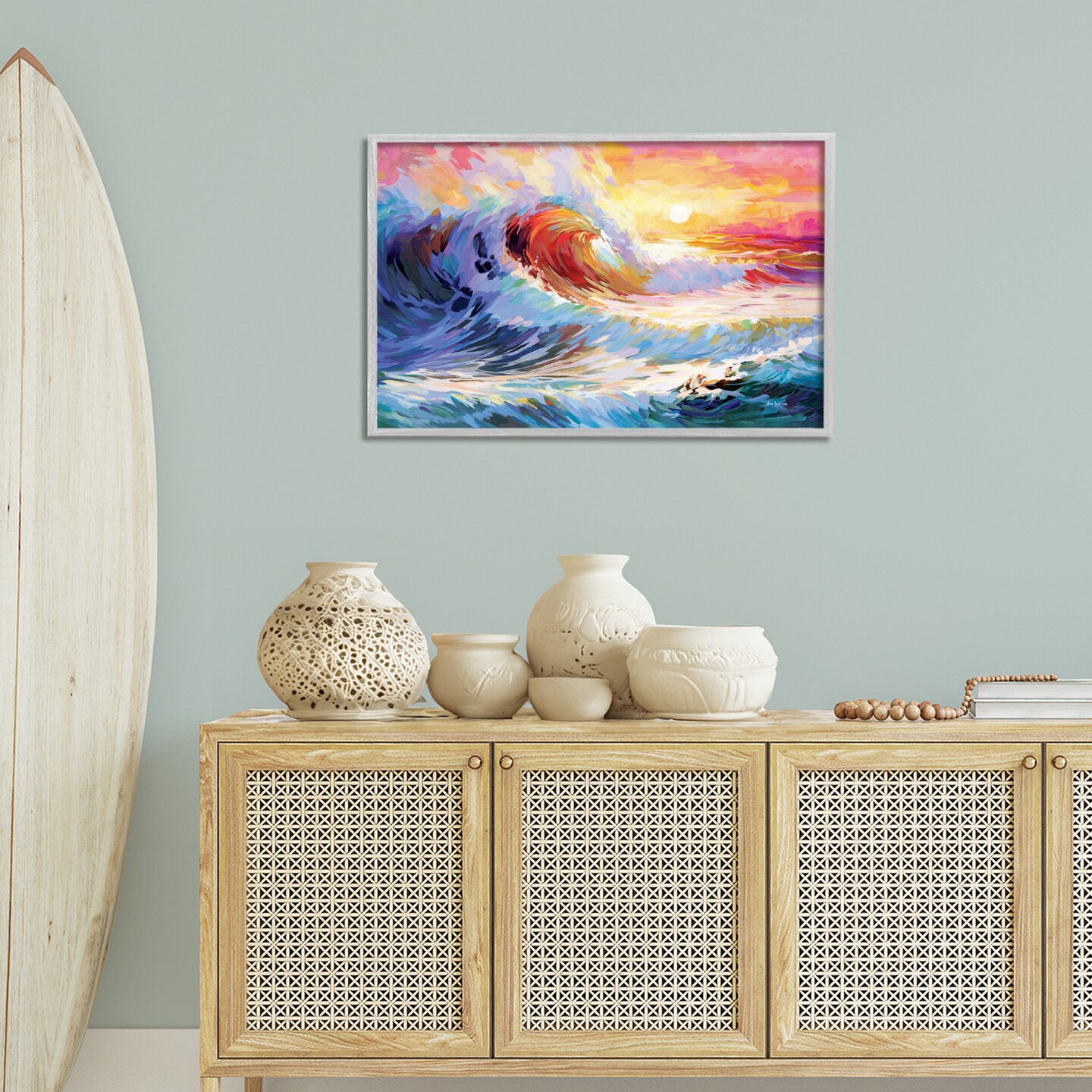 Stupell Industries Sunrise over Ocean Wave Framed Giclee Wall Art Design by Leon Devenice