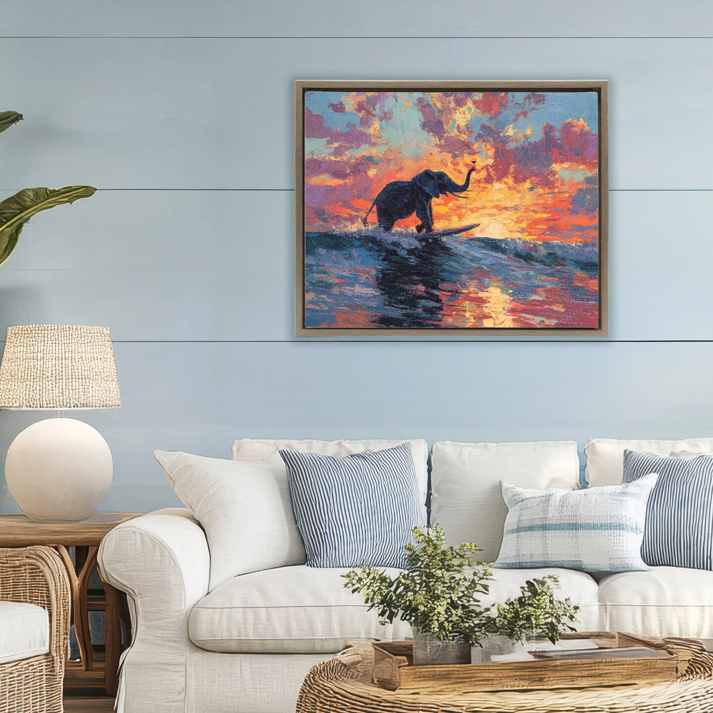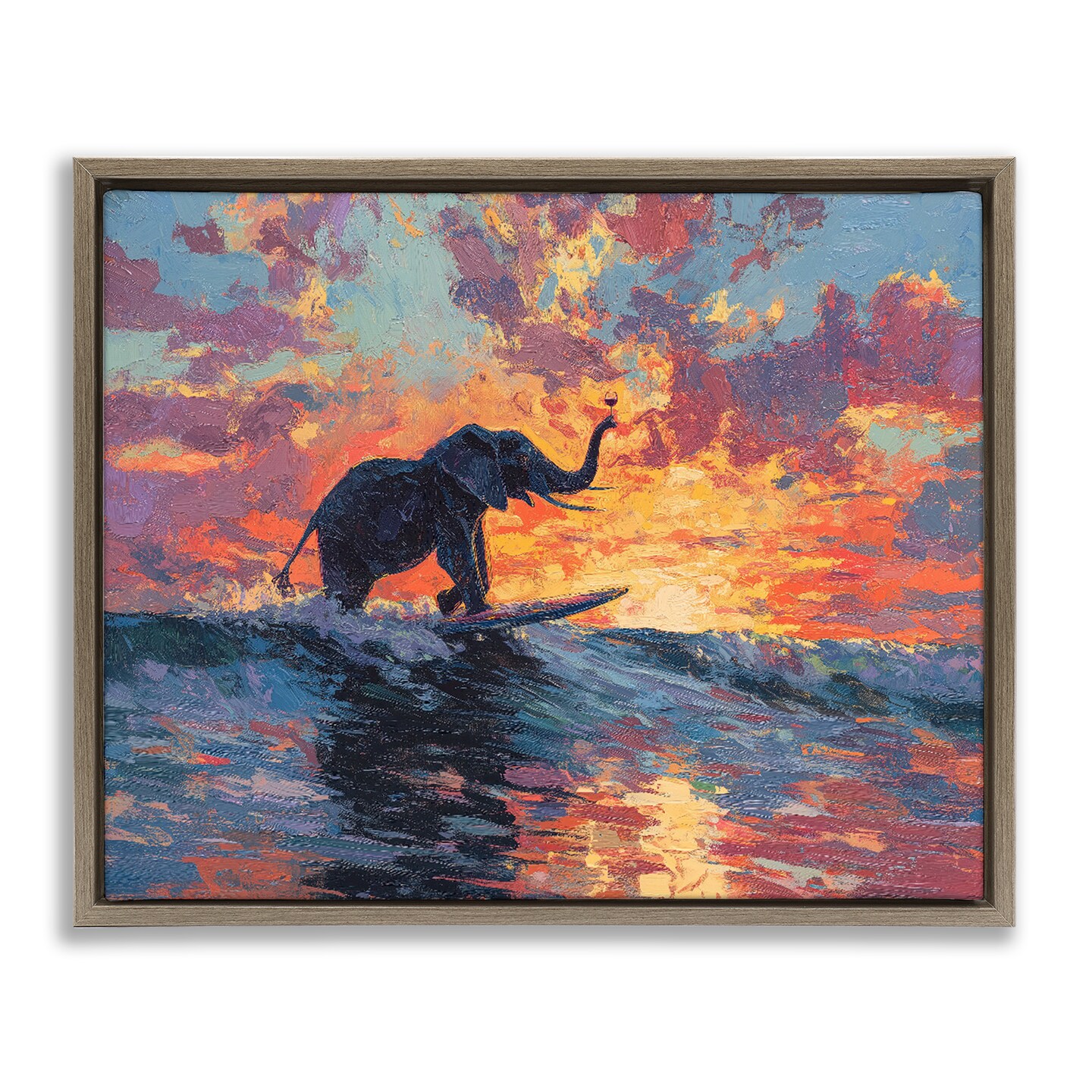 Stupell Industries Sunset Surf Elephant Floating Frame, design by Ziwei Li