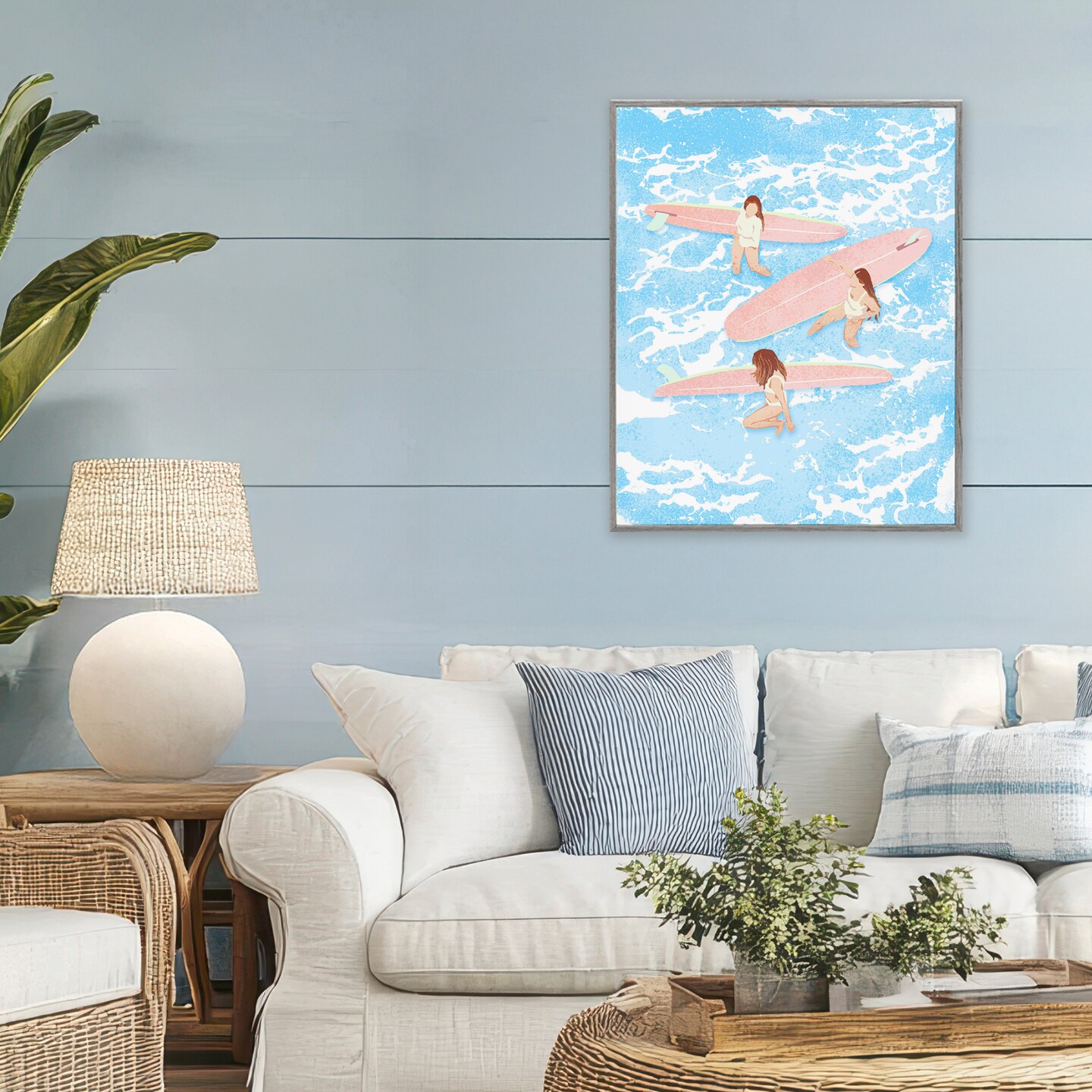 Stupell Industries Surfing Girls Trio Framed Giclee, design by Ziwei Li