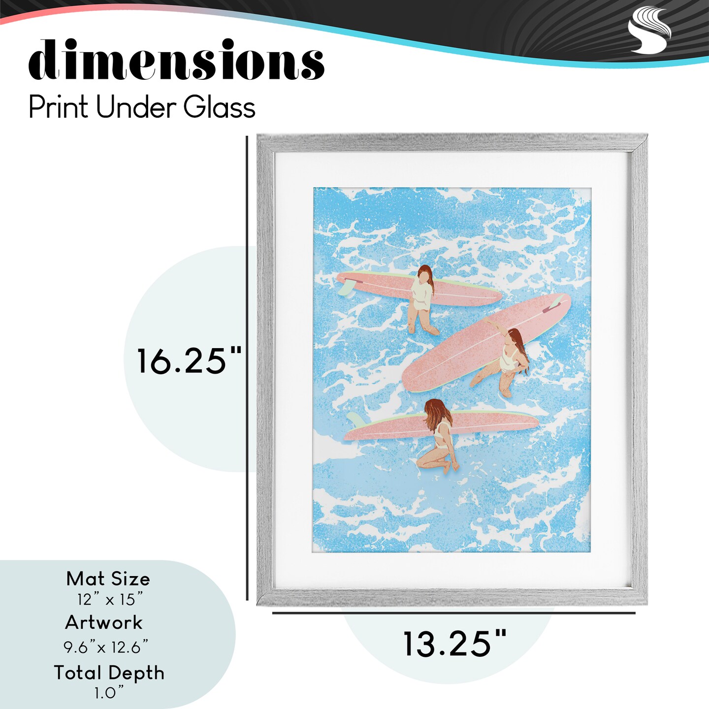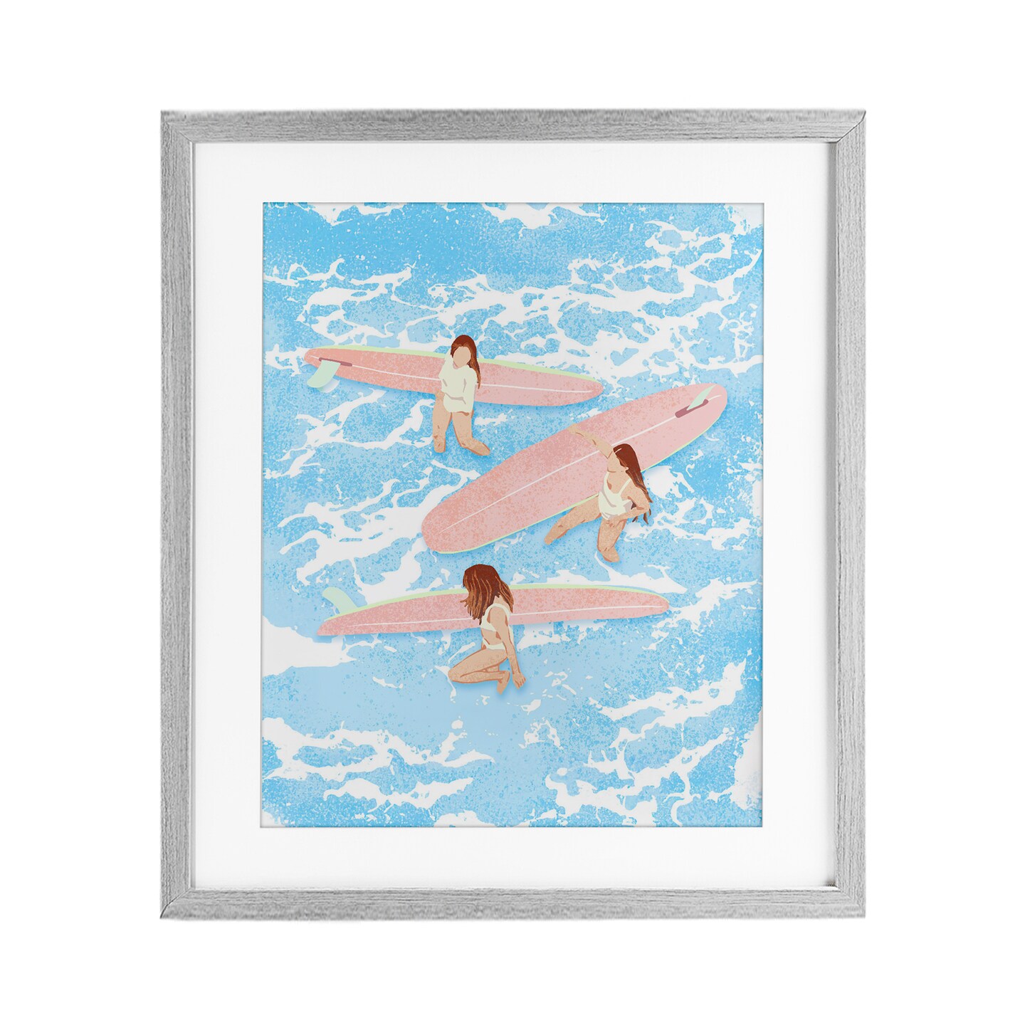 Stupell Industries Surfing Girls Trio Framed Print Under Glass, design by Ziwei Li