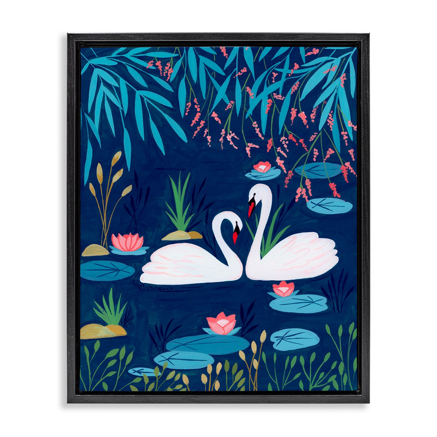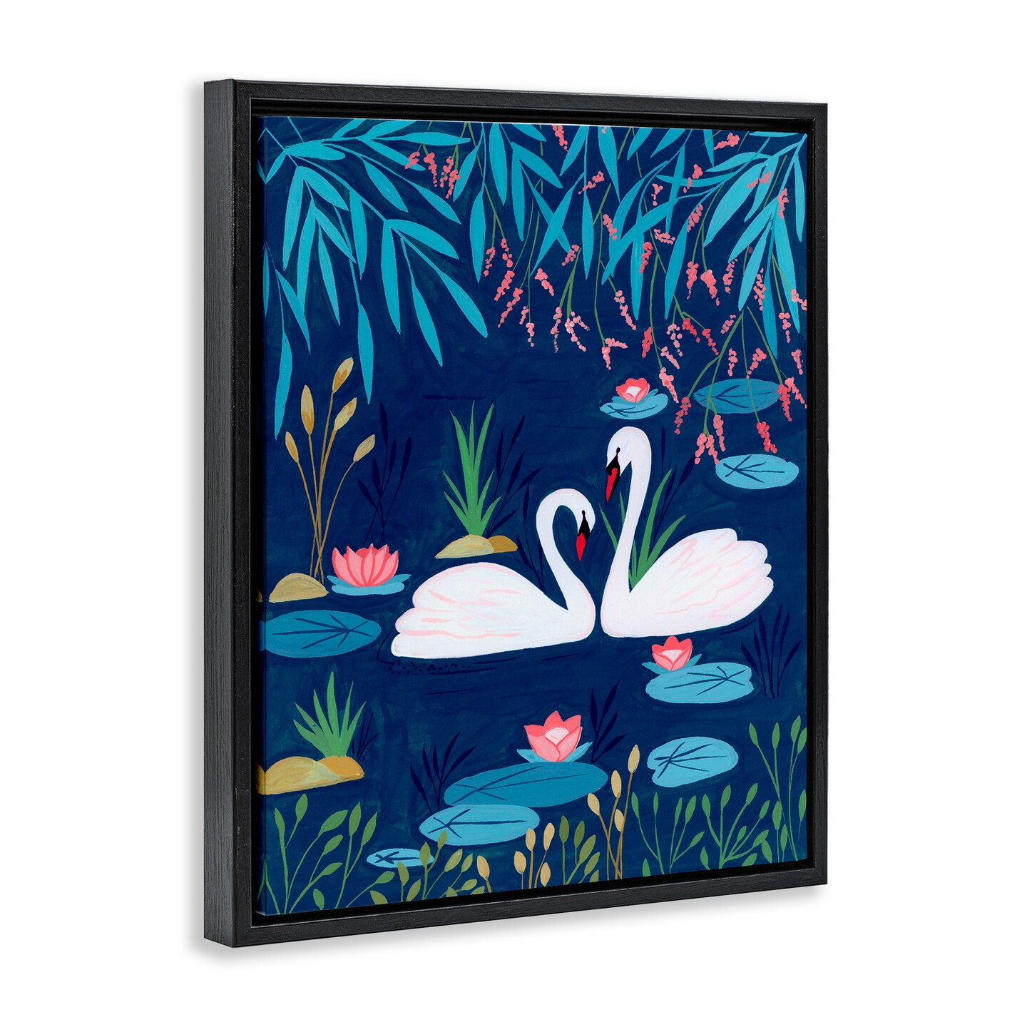 Stupell Industries Swan Pair on Blue Pond Floating Frame, design by Nabeela Rumi