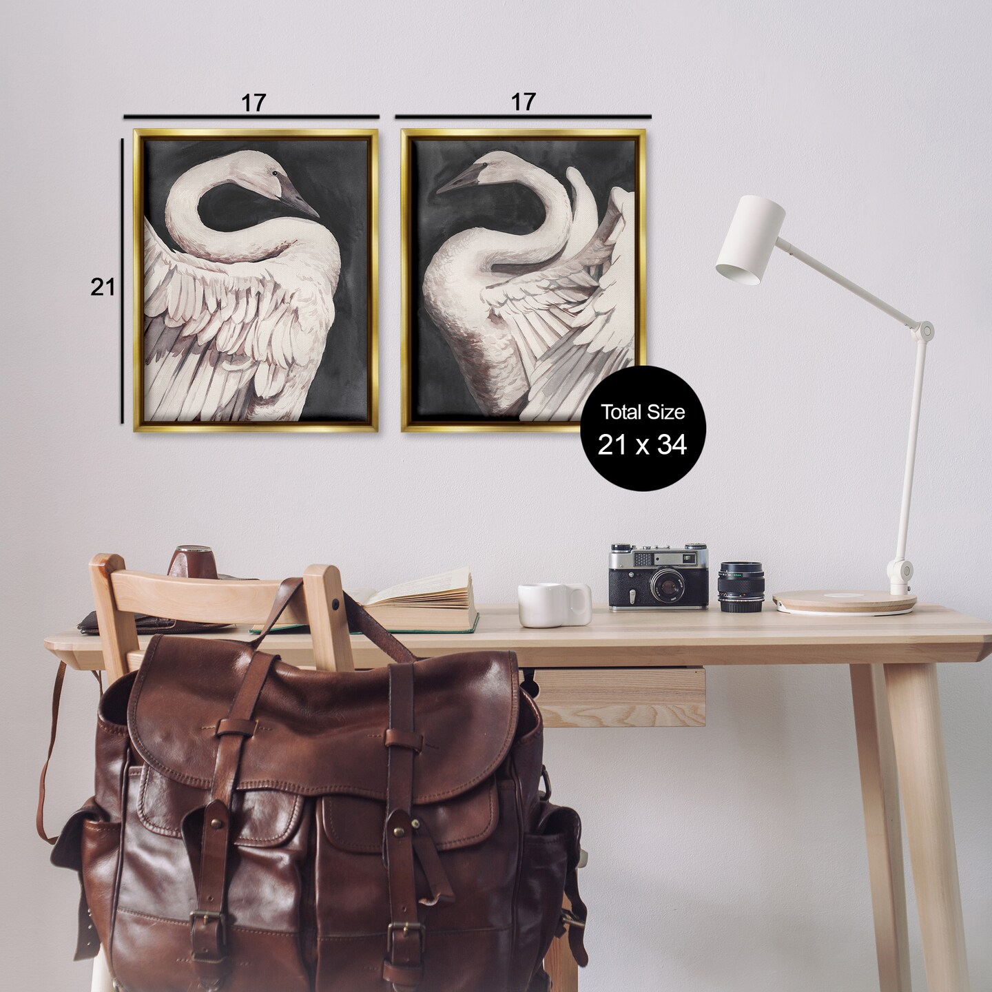 Stupell Industries Swans Taking Flight 2pc Floater Framed Canvas Wall Art Set Design by Grace Popp