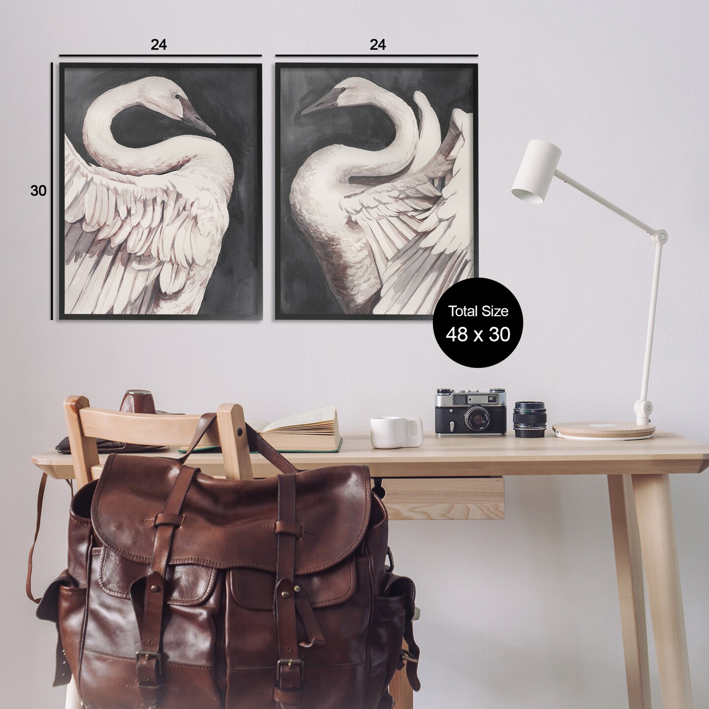Stupell Industries Swans Taking Flight 2pc Framed Giclee Wall Art Set Design by Grace Popp