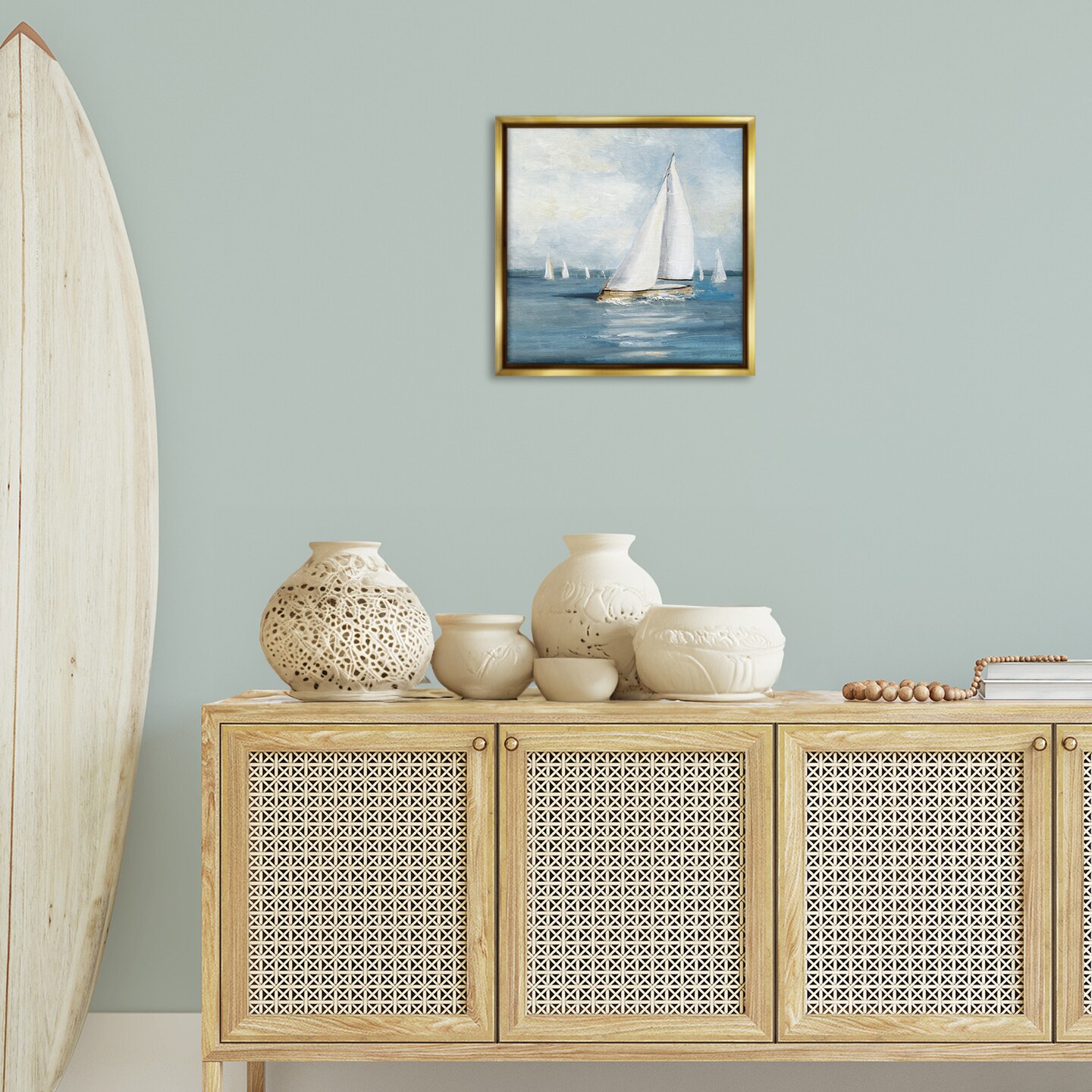 Stupell Industries Swaying Sailboat Vessel Floating Frame By Sally Swatland