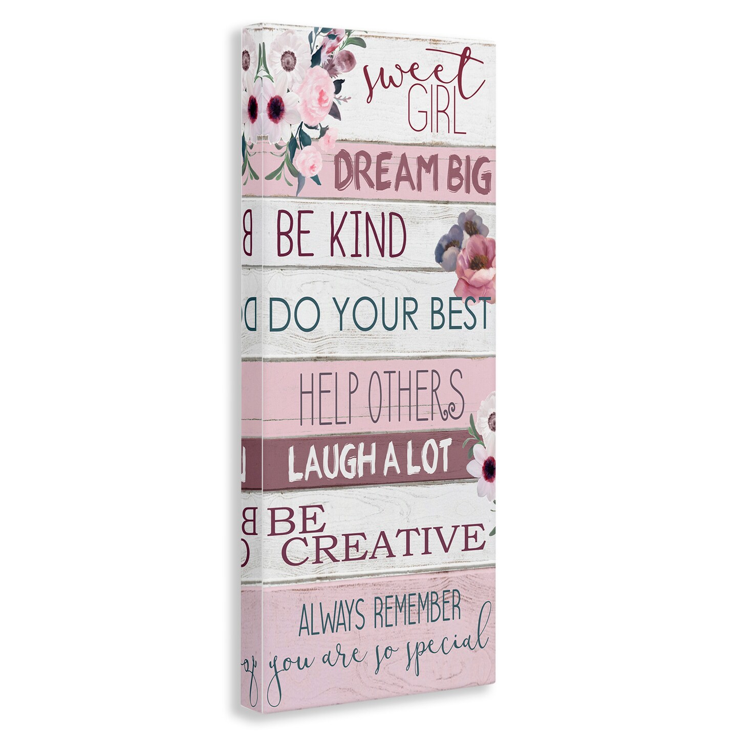 Stupell Industries Sweet Girl Inspirational Phrases Canvas Wall Art