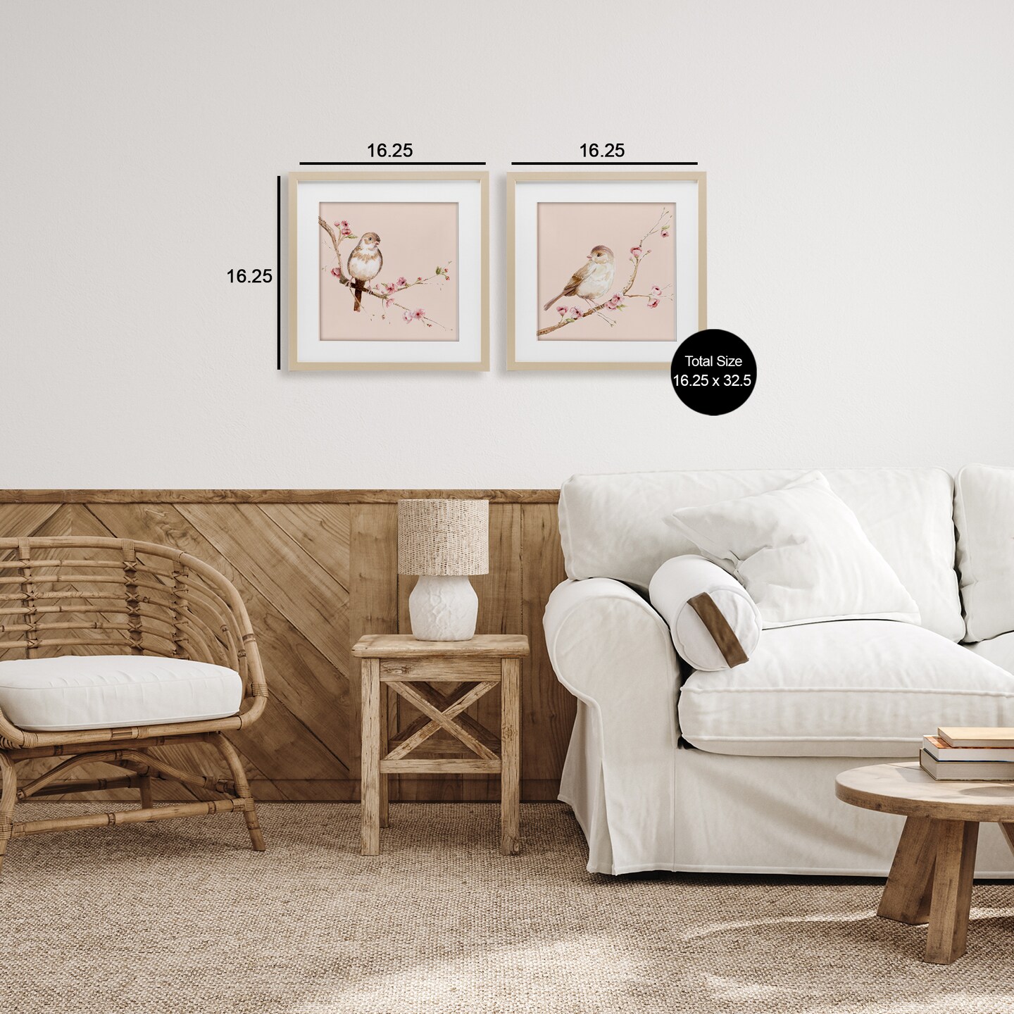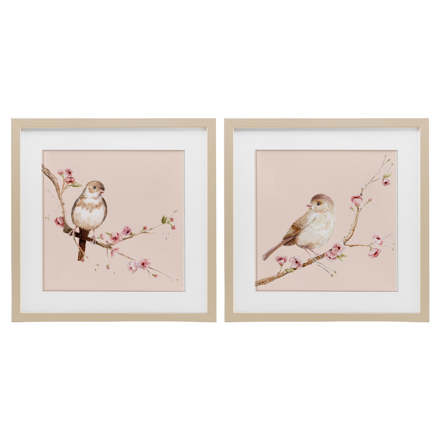 Stupell Industries Sweetest Brown Birds Branch 2pc Framed Print Under Glass Set, design by Lisa Wehmeyer