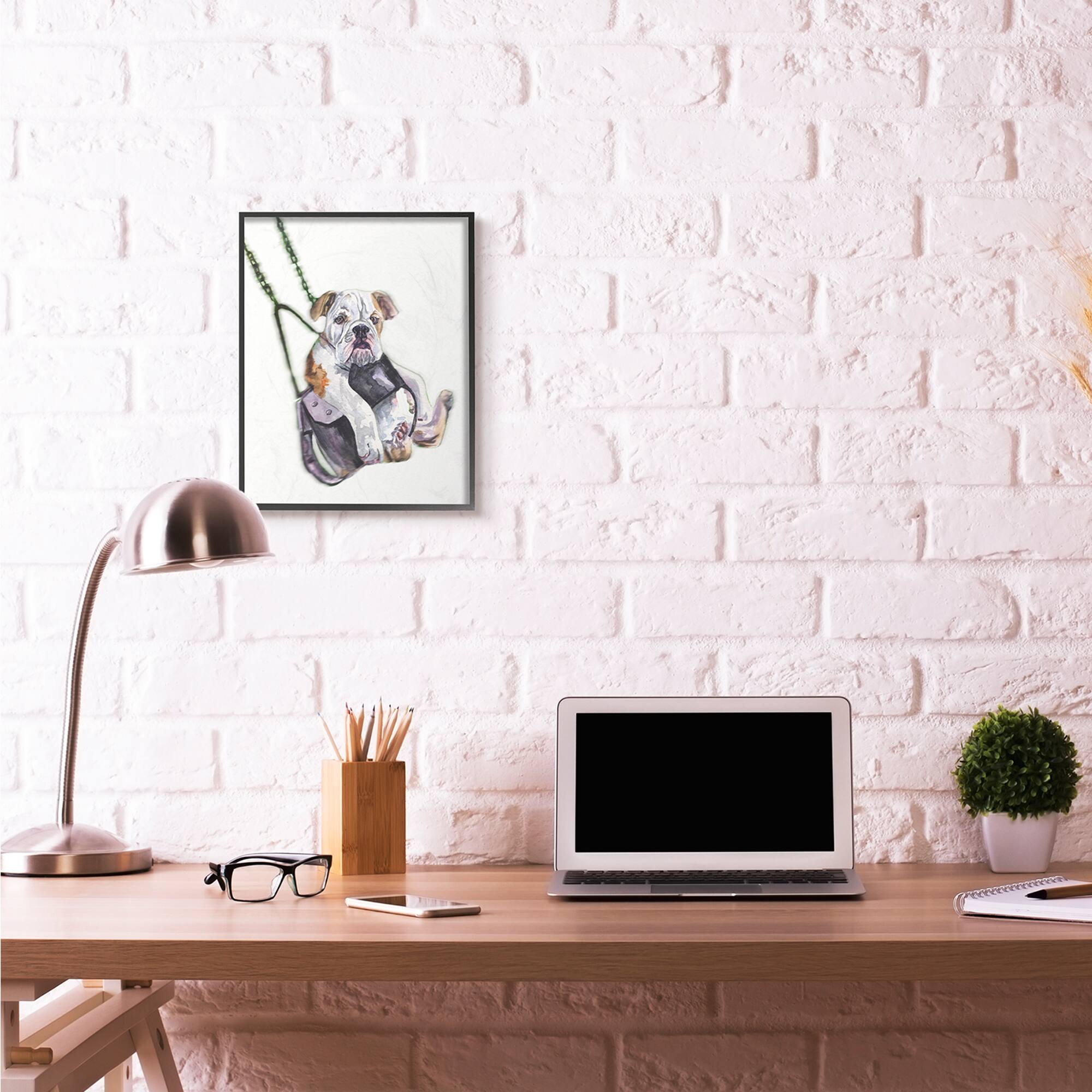 Stupell Industries Swing Funny Dog Pet Animal Watercolor Painting in Black Frame Wall Art
