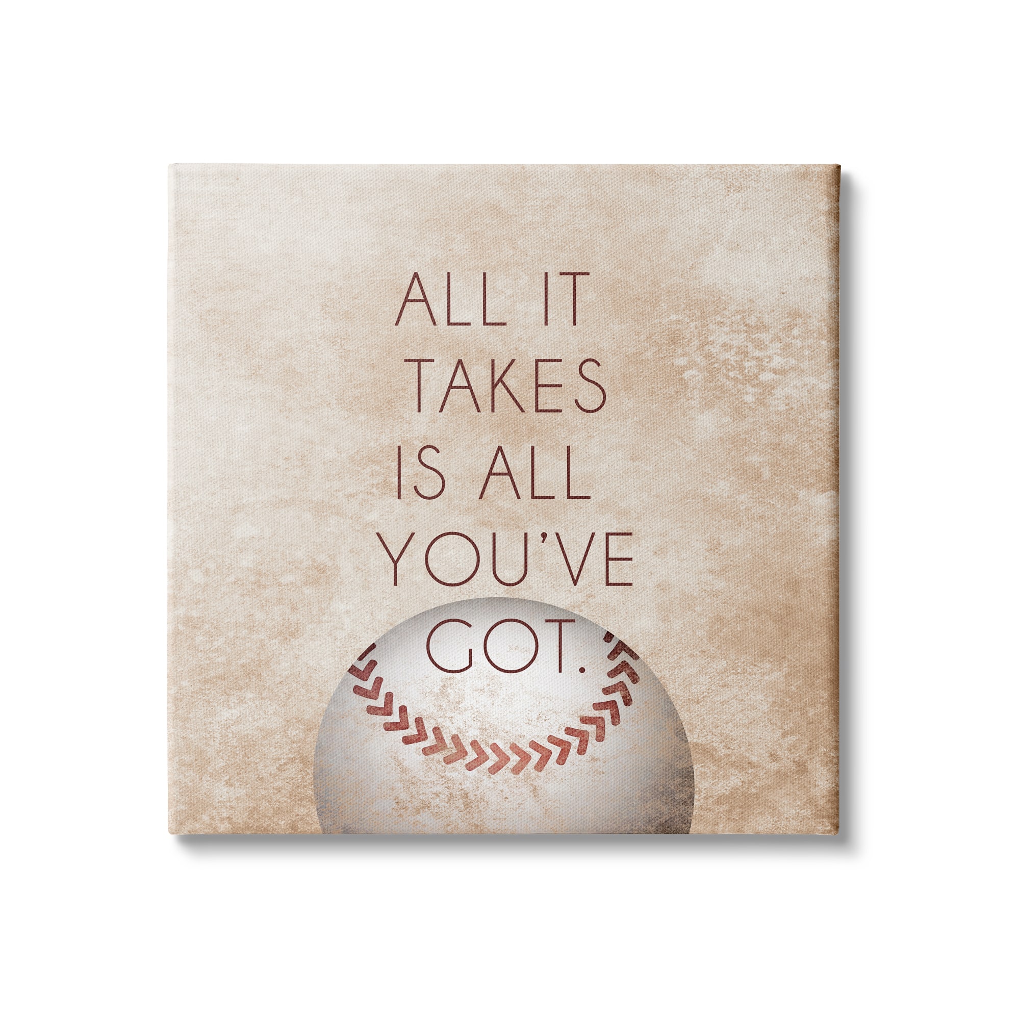 Stupell Industries Takes All You've Got Phrase Sports Baseball Brown Canvas Wall Art