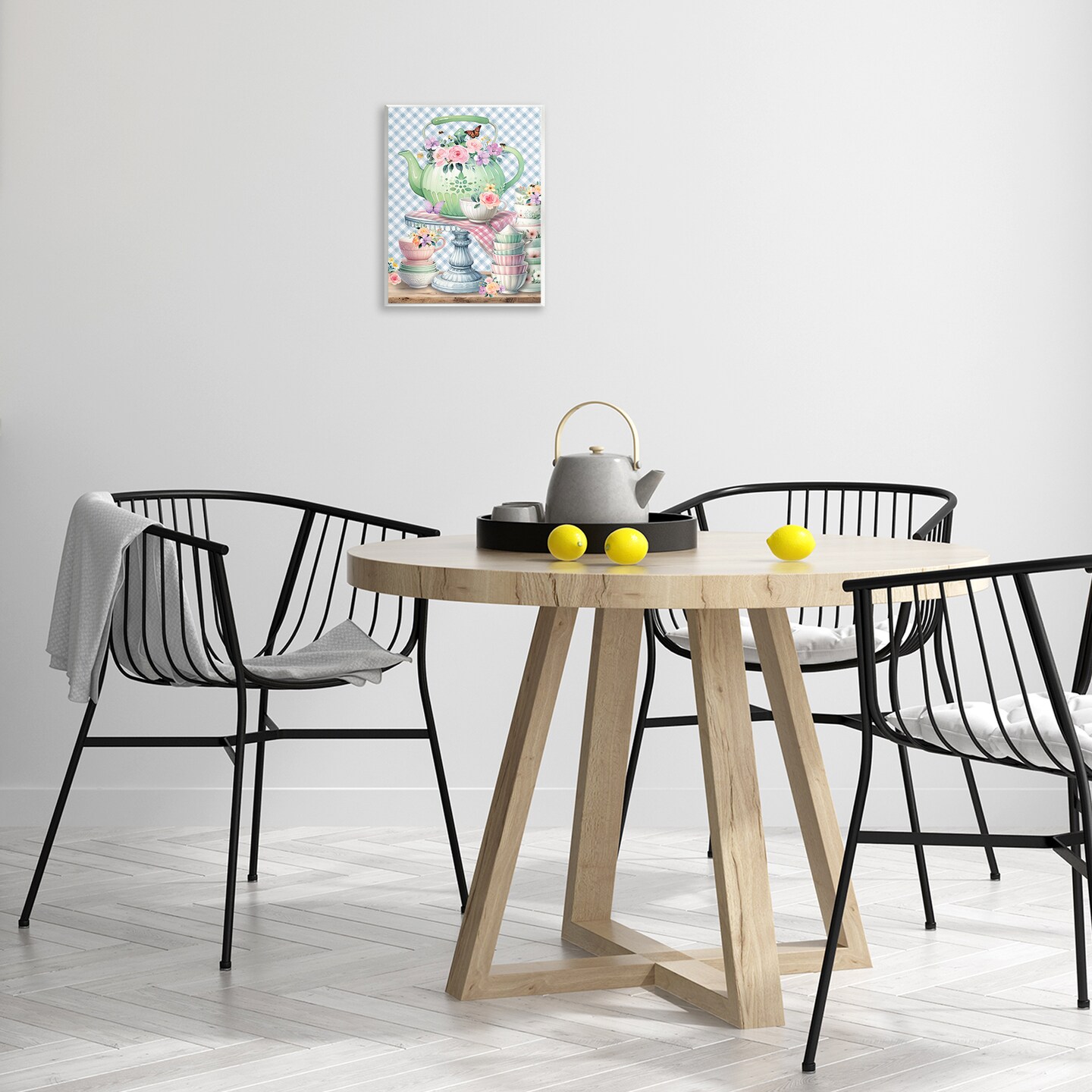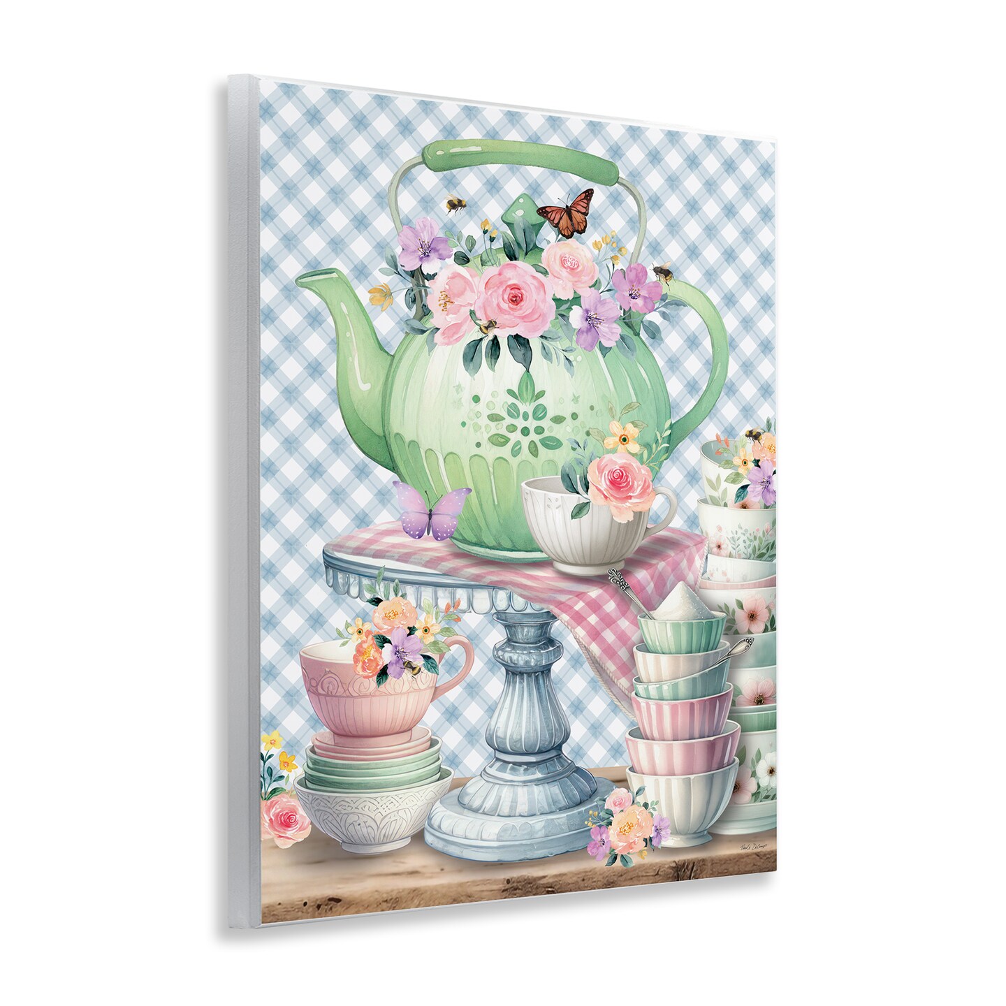 Stupell Industries Tea Kettle on Gingham Wall Plaque Art Design by Nicole DeCamp