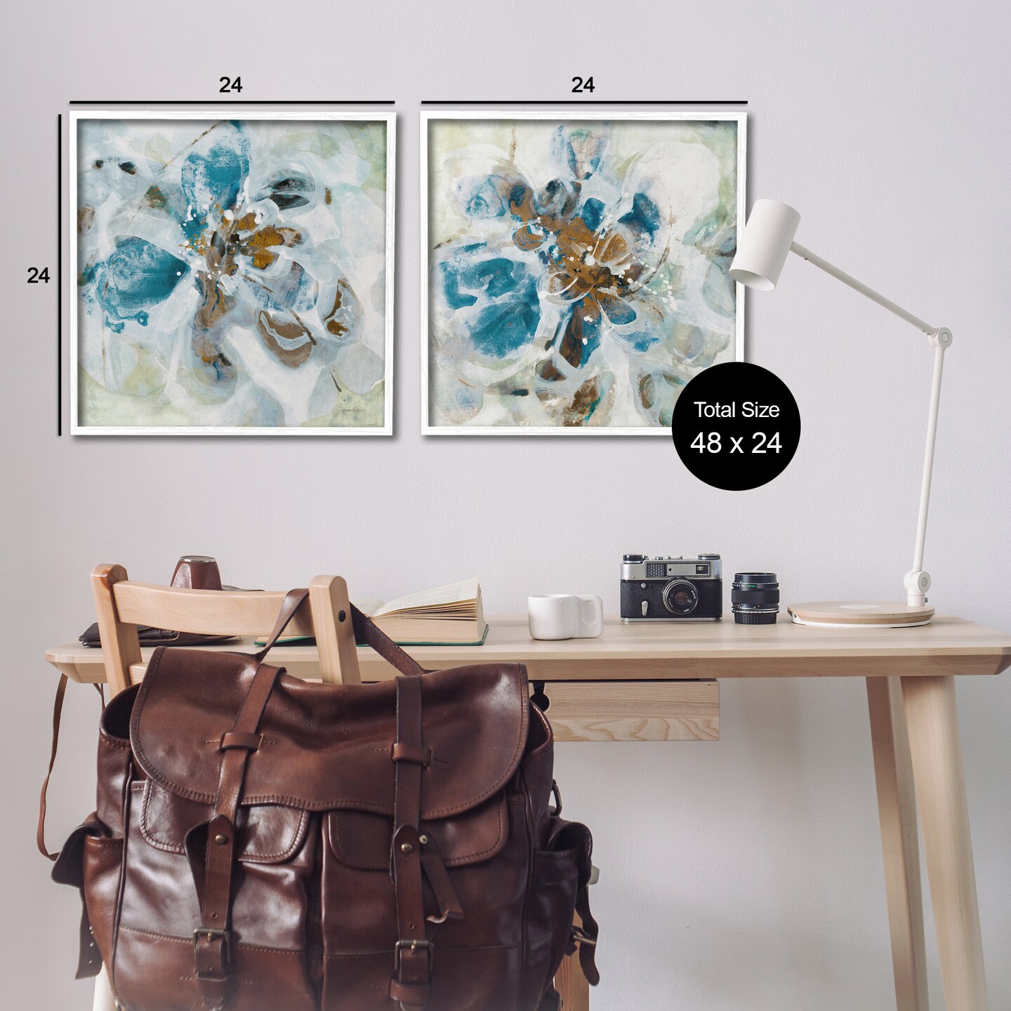 Stupell Industries Teal Abstract Flower Petals 2 pc Framed Giclee Wall Art Set Design by Liz Jardine