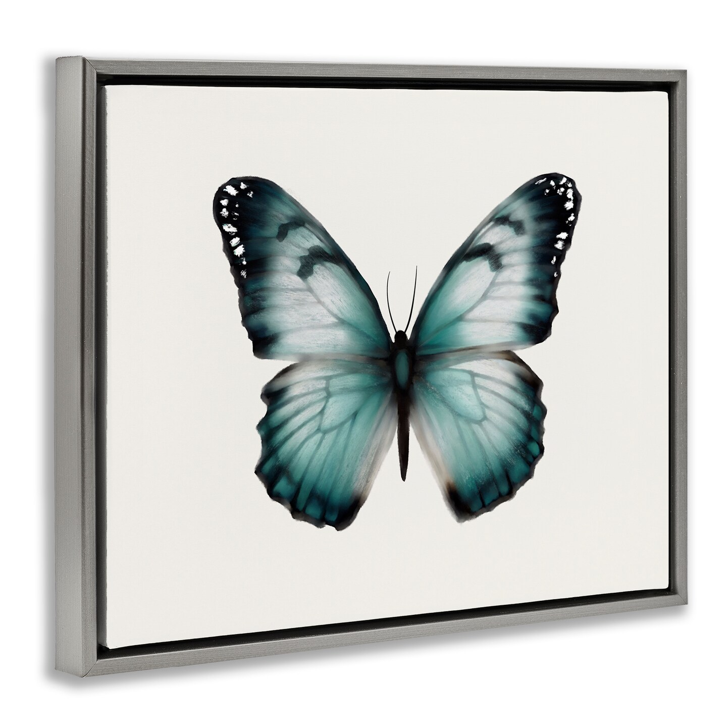 Stupell Industries Teal Symmetrical Butterfly Framed Floater Canvas Wall Art Design by Elizabeth Medley