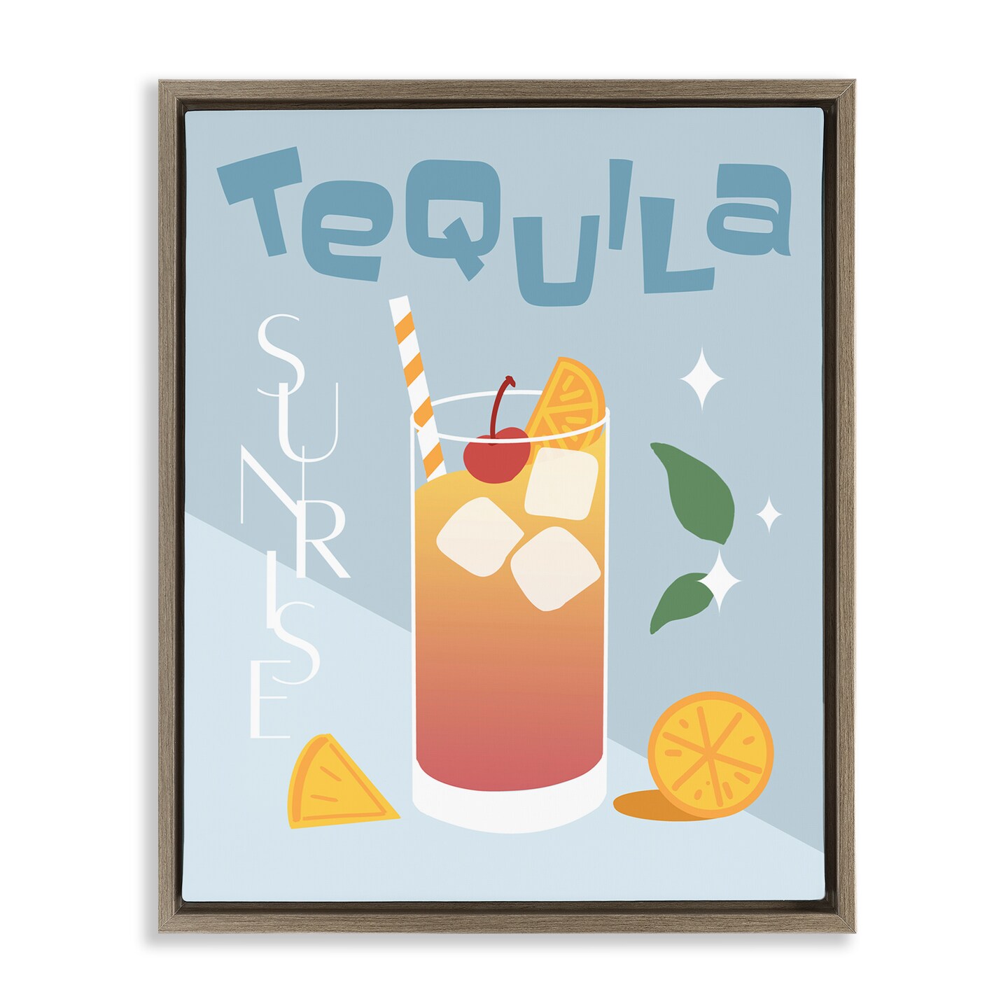 Stupell Industries Tequila Sunrise Typography Framed Floater Canvas Wall Art Design by Anna Quach