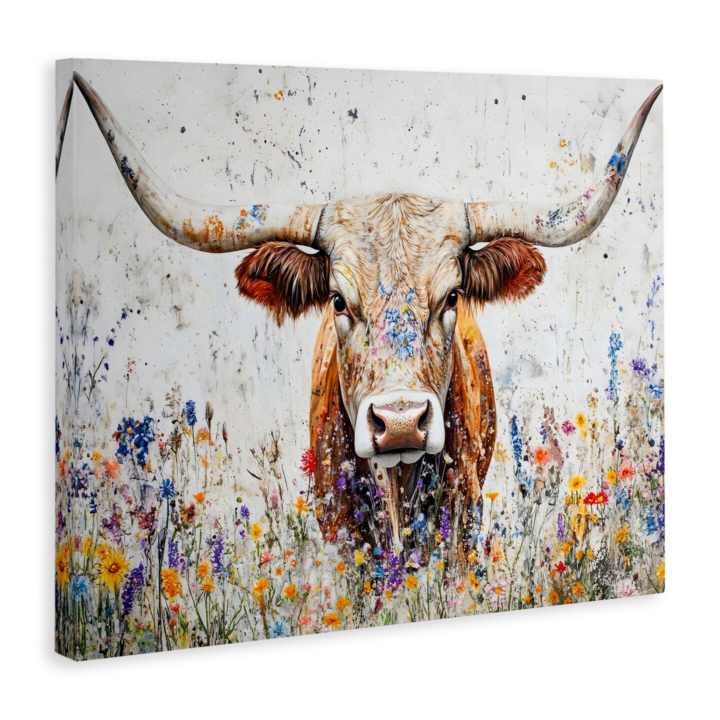 Stupell Industries Texas Longhorn Speckled Flowers Canvas By Franklyn Gregory
