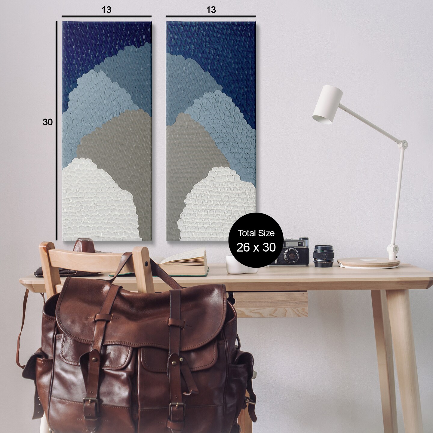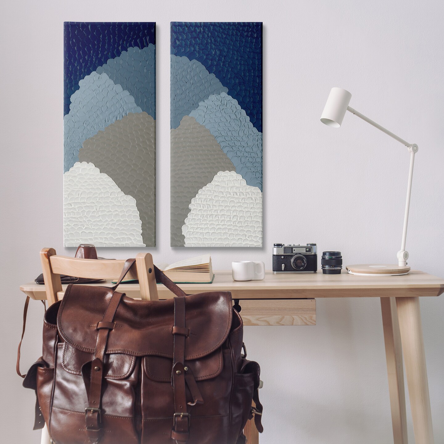 Stupell Industries Textured Blue Abstract Mountains 2 pc Canvas Wall Art Set Design by Ben Schneider