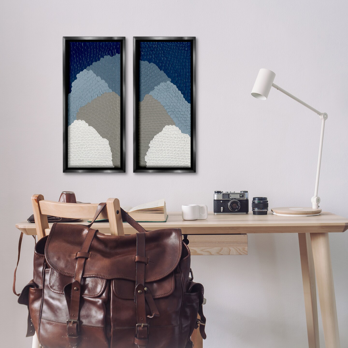 Stupell Industries Textured Blue Abstract Mountains 2 pc Framed Floater Canvas Wall Art Set Design by Ben Schneider