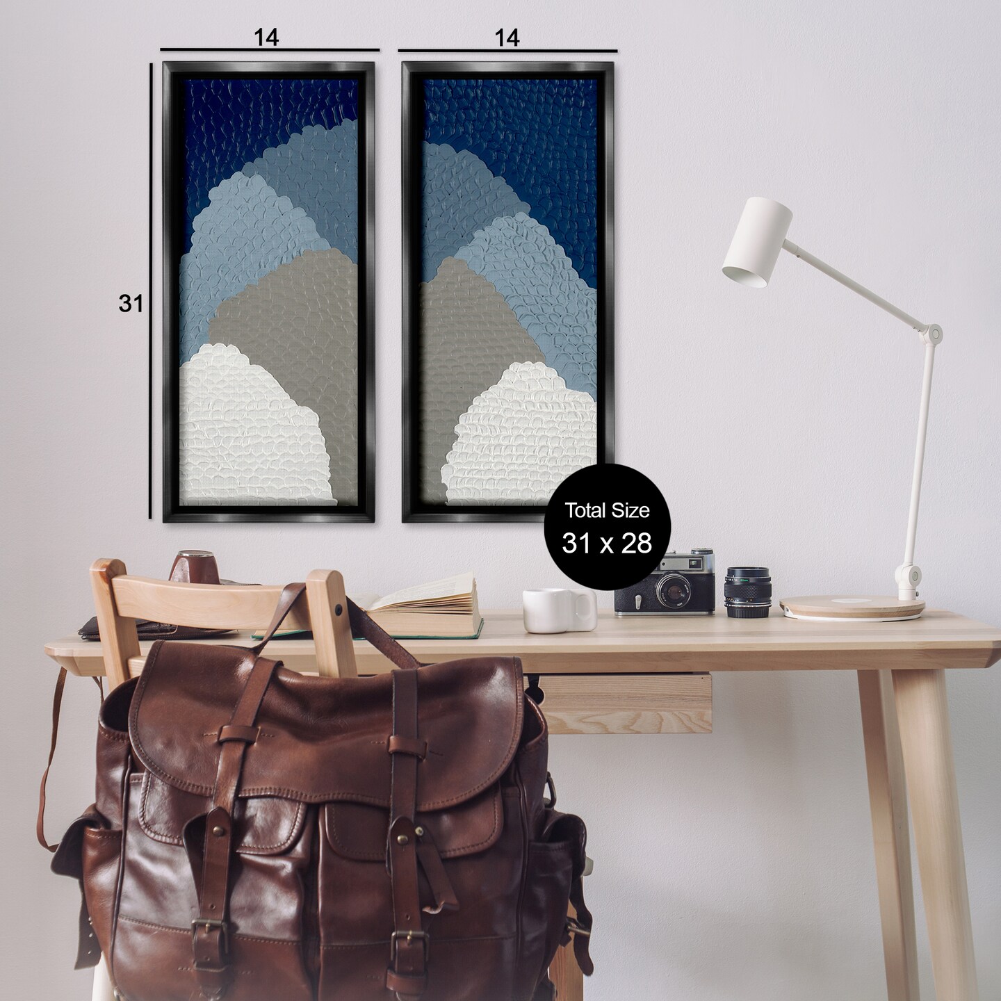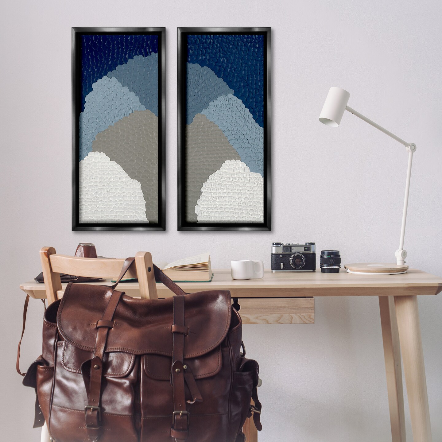 Stupell Industries Textured Blue Abstract Mountains 2 pc Framed Floater Canvas Wall Art Set Design by Ben Schneider