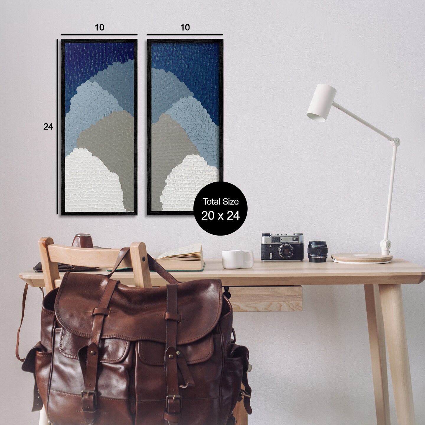 Stupell Industries Textured Blue Abstract Mountains 2 pc Framed Giclee Wall Art Set Design by Ben Schneider