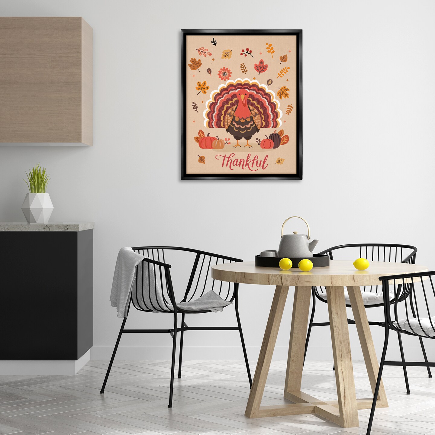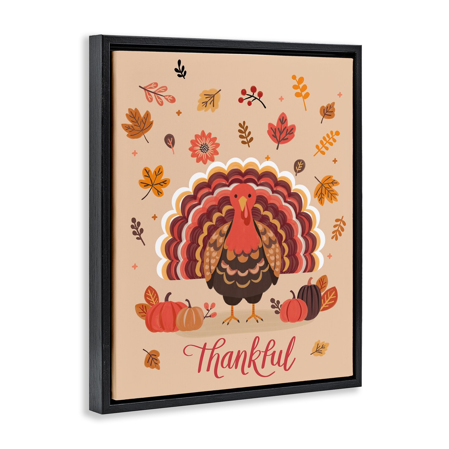 Stupell Industries Thankful Autumnal Turkey Floater Framed Canvas Wall Art Design by Nancy McKenzie