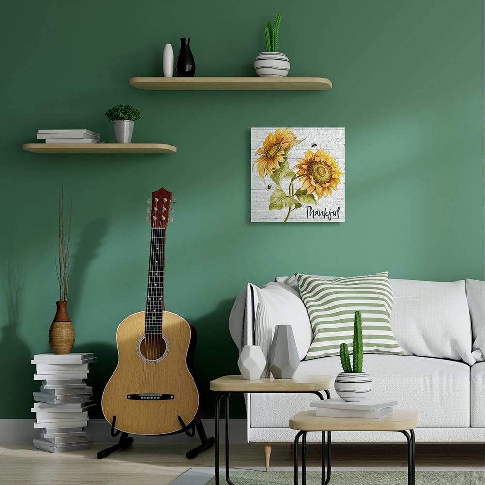 Stupell Industries Thankful Text Country Sunflowers Bumble Bees Canvas Wall Art