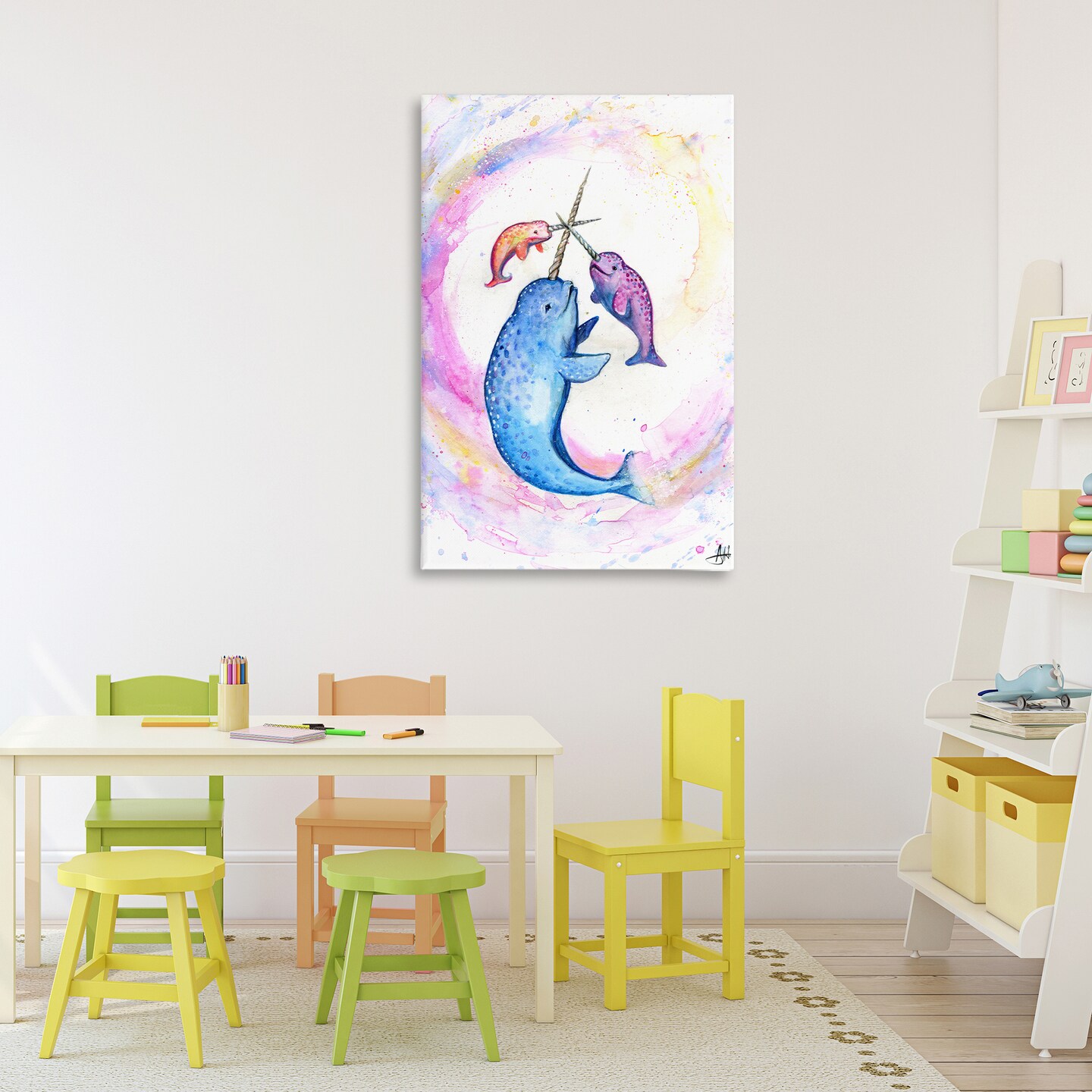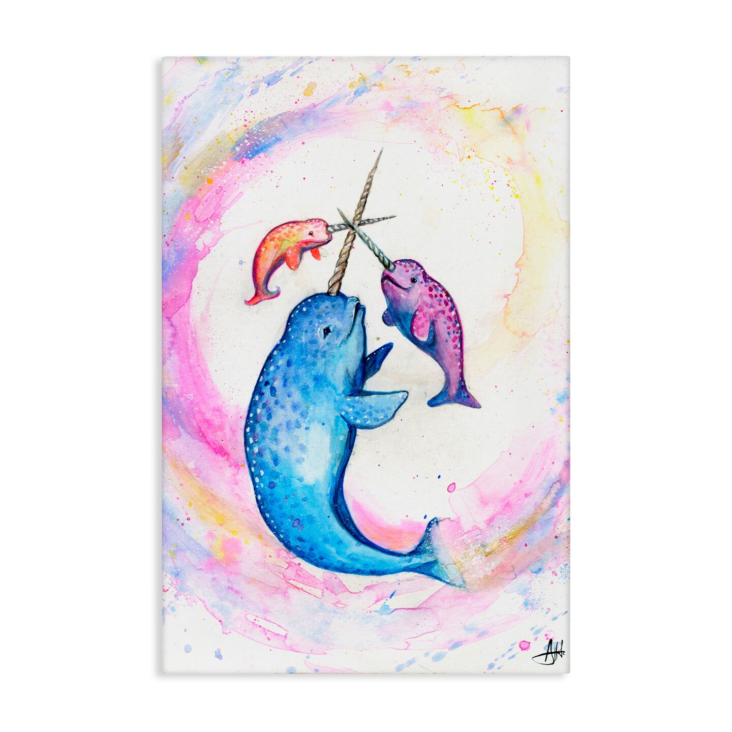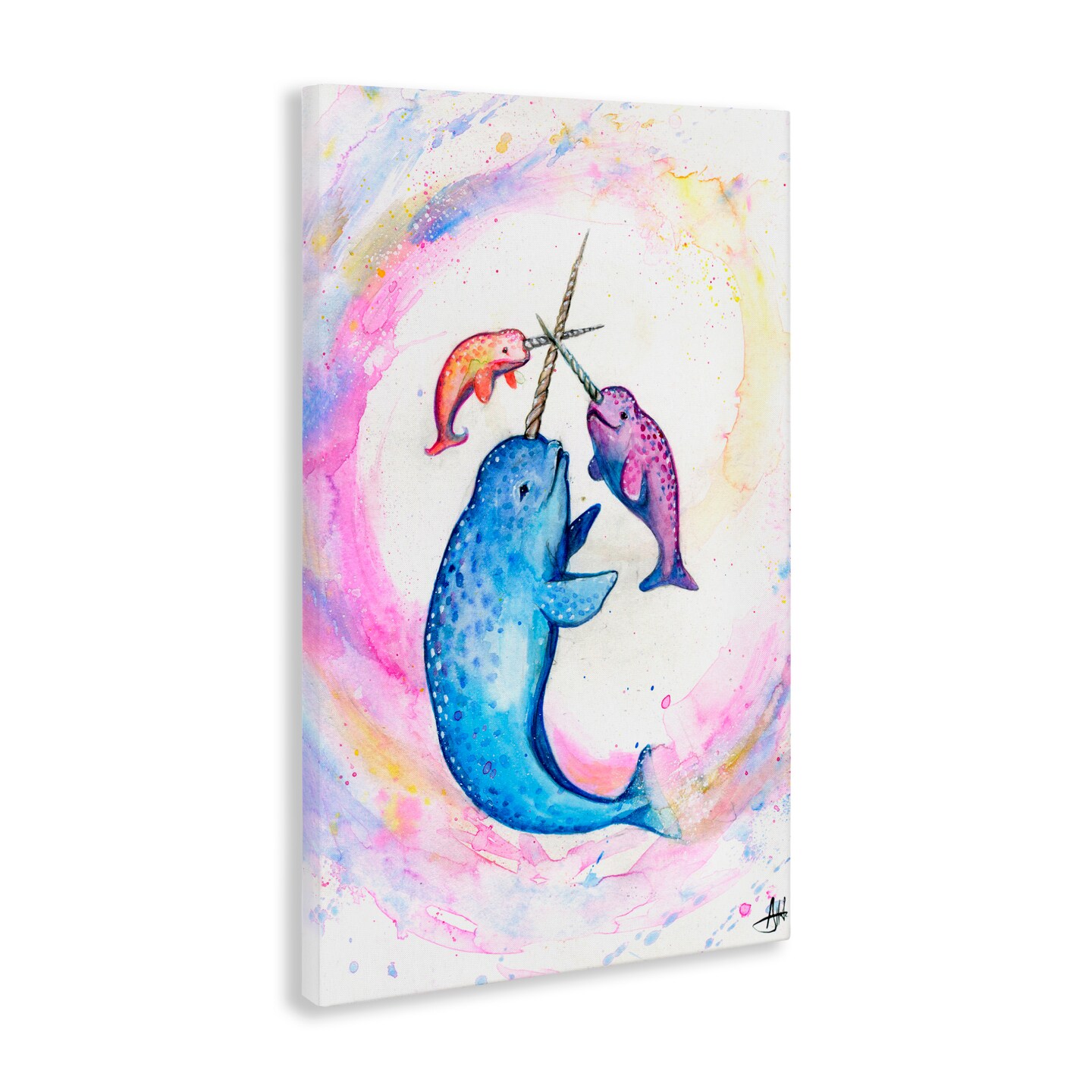 Stupell Industries Three Narwhals in Pastels Canvas, design by Marc Allante