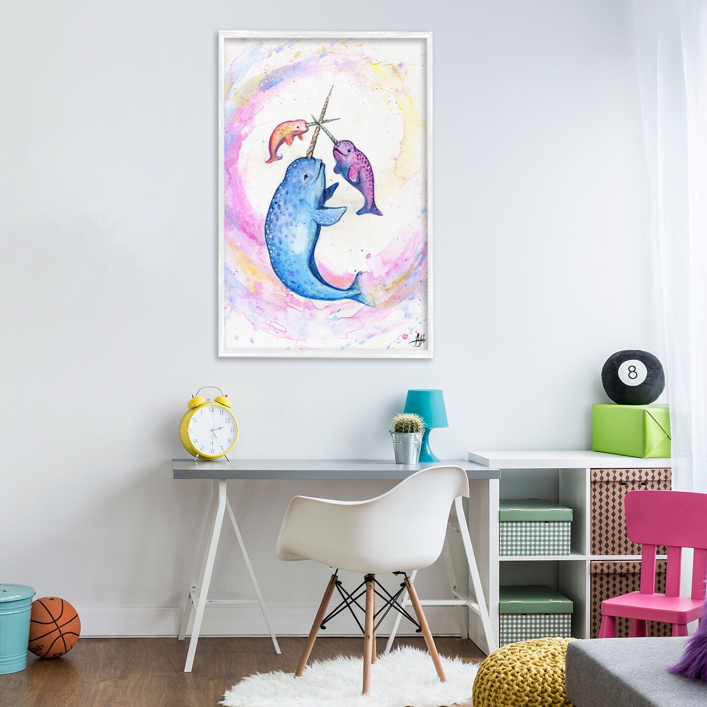 Stupell Industries Three Narwhals in Pastels Framed Giclee, design by Marc Allante