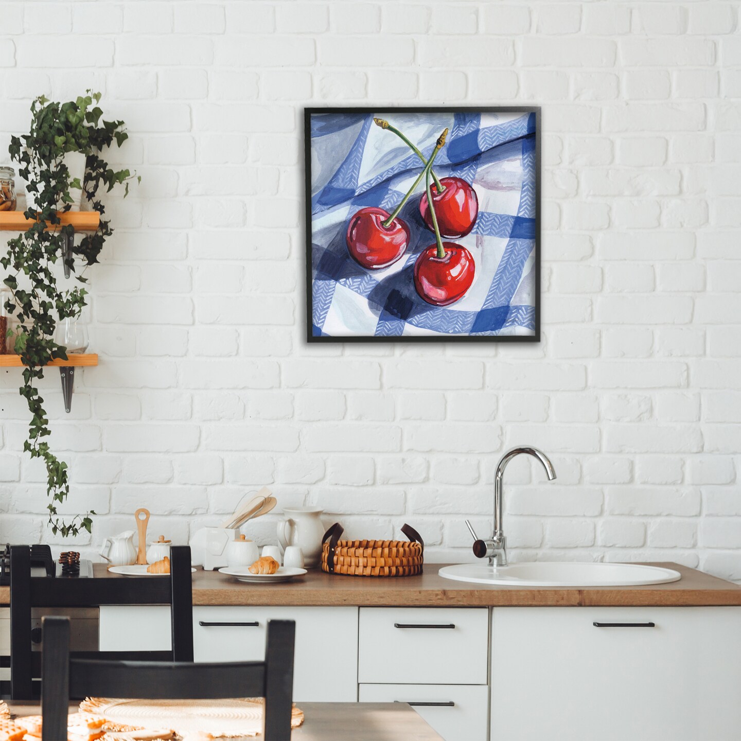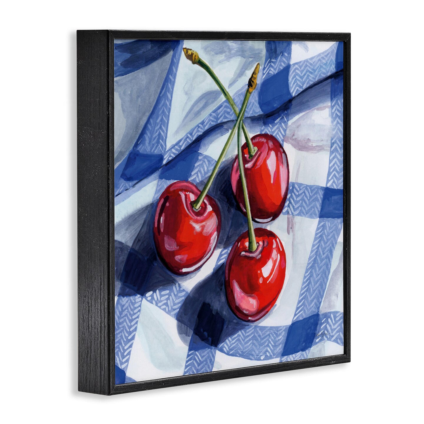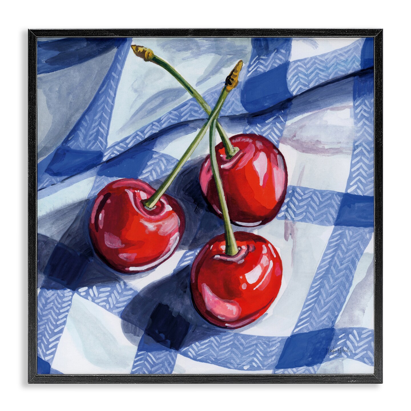 Stupell Industries Three Picnic Cherries on Gingham Framed Giclee, design by Kate Jarvik Birch