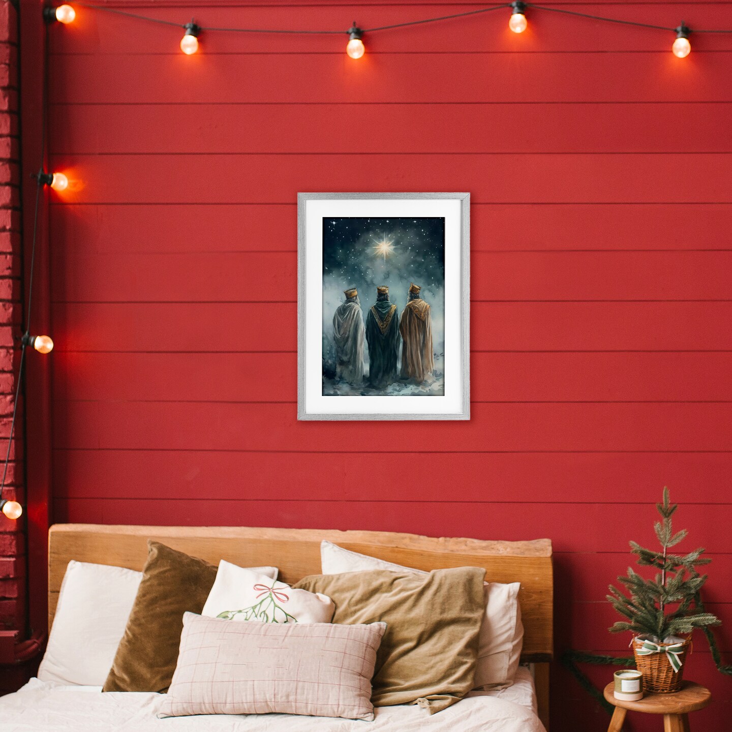Stupell Industries Three Wise Men & North Star Framed Print Under Glass, design by Petal Prints Design