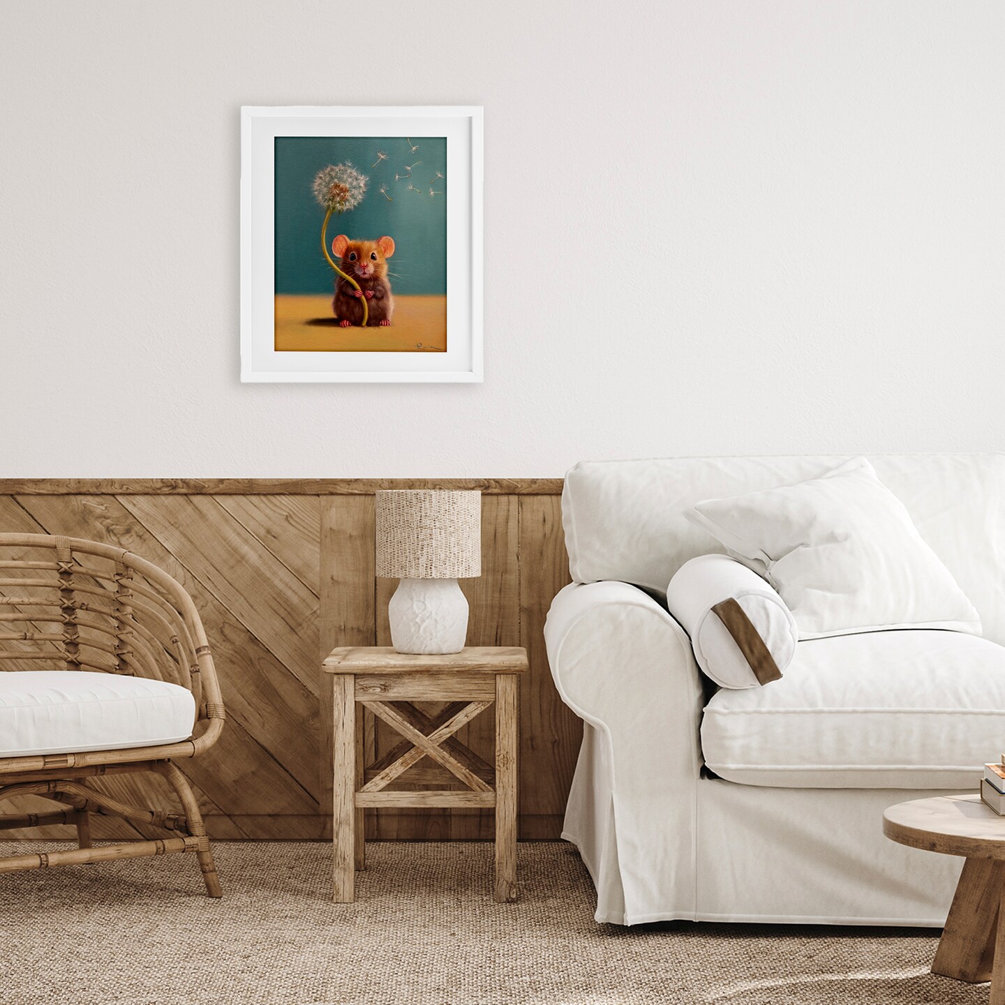 Stupell Industries Tiny Wishes Mouse & Dandelion Framed Print Under Glass, design by Lucia Heffernan