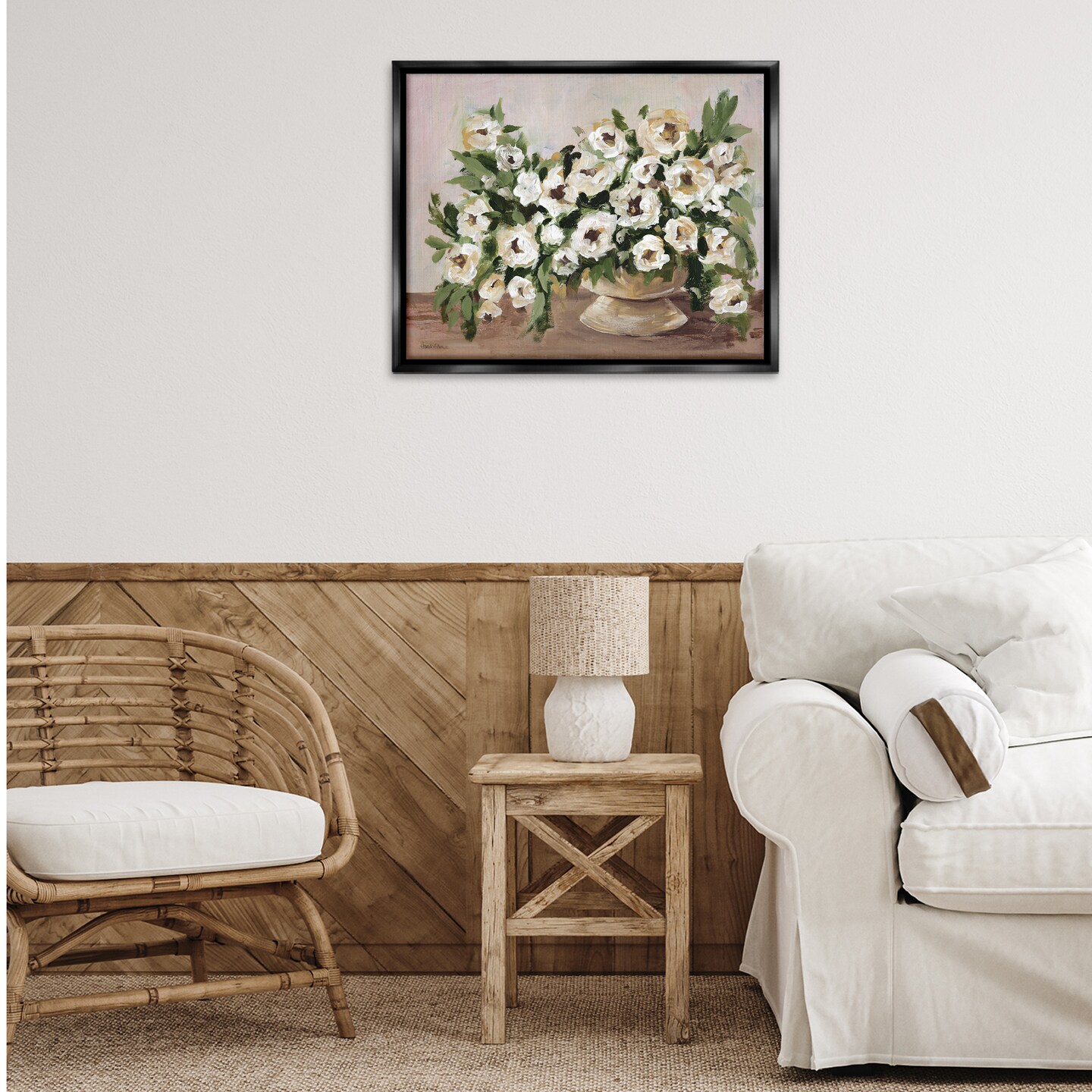 Stupell Industries Traditional Beige Flowers Floater Framed Canvas Wall Art Design by Amanda Hilburn