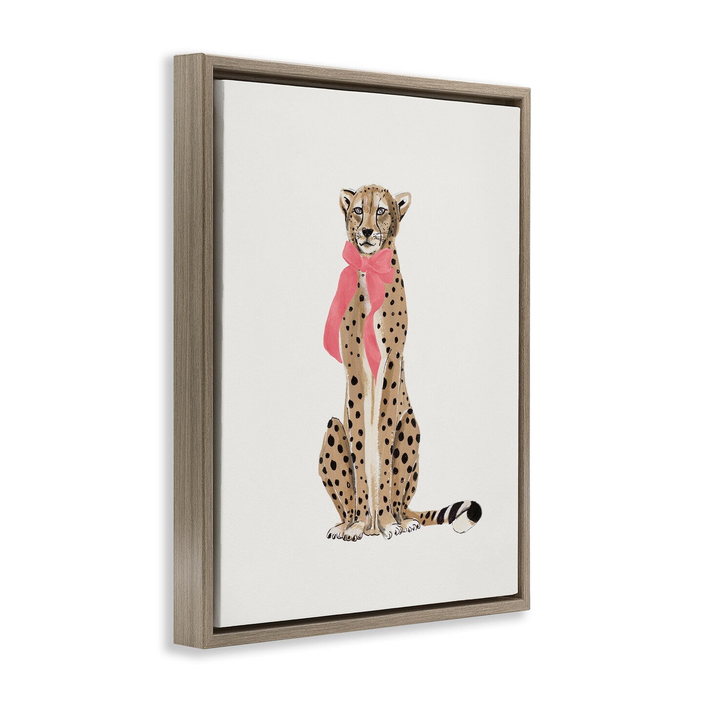 Stupell Industries Trendy Cheetah with Ribbon Framed Floater Canvas Wall Art Design by Patricia Pinto