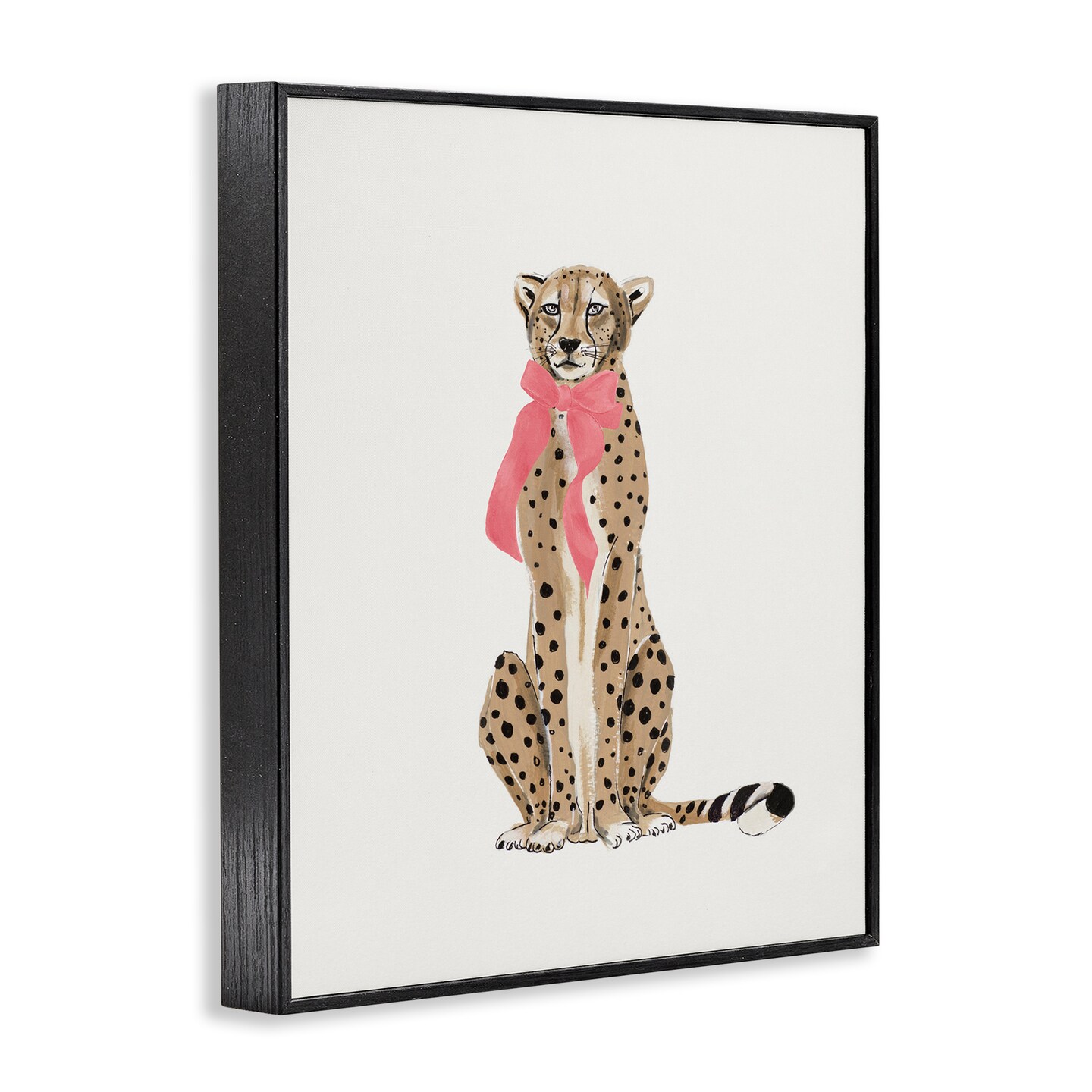 Stupell Industries Trendy Cheetah with Ribbon Framed Giclee Wall Art Design by Patricia Pinto