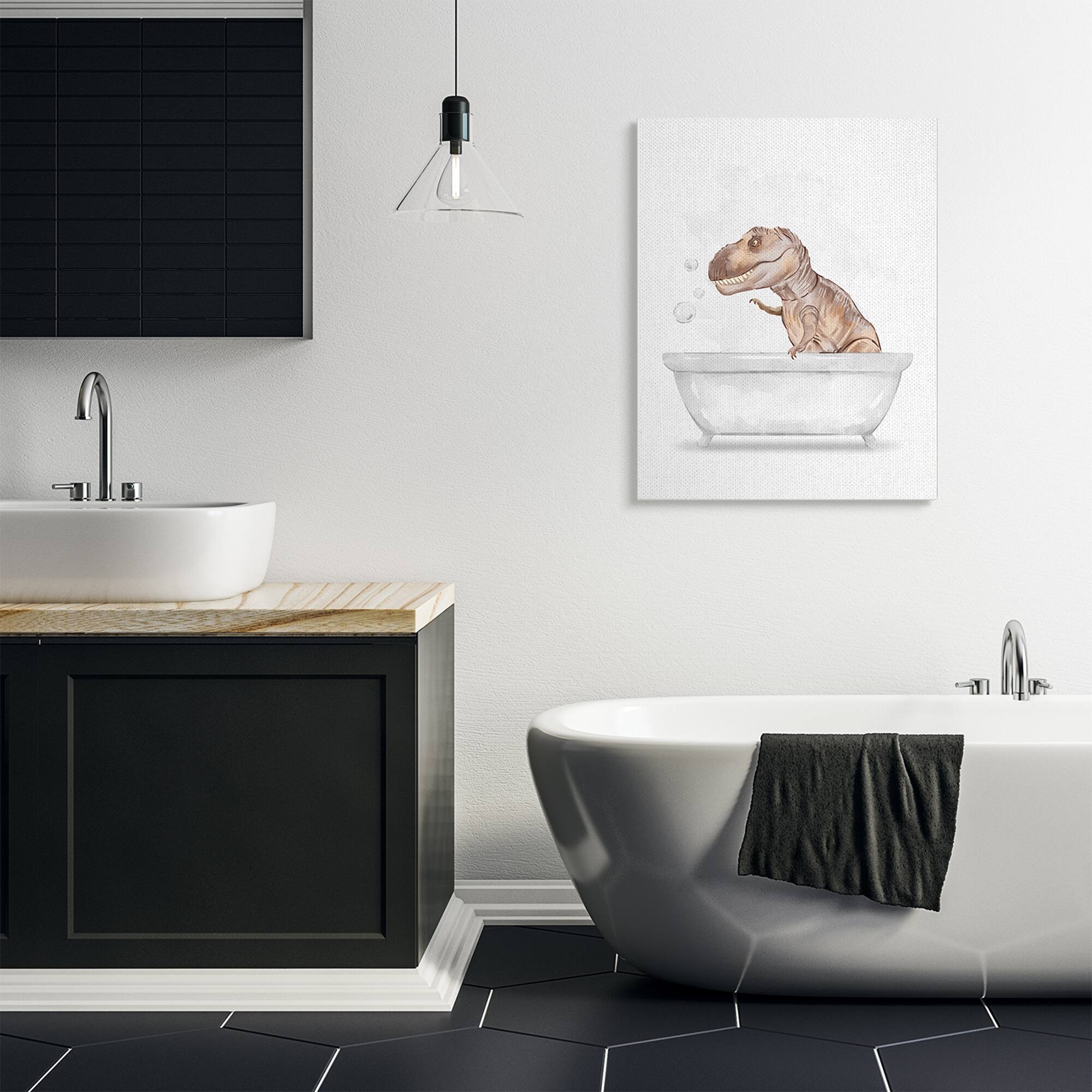 Stupell Industries T-Rex Dinosaur in Bubble Bath White Brown Canvas Wall Art
