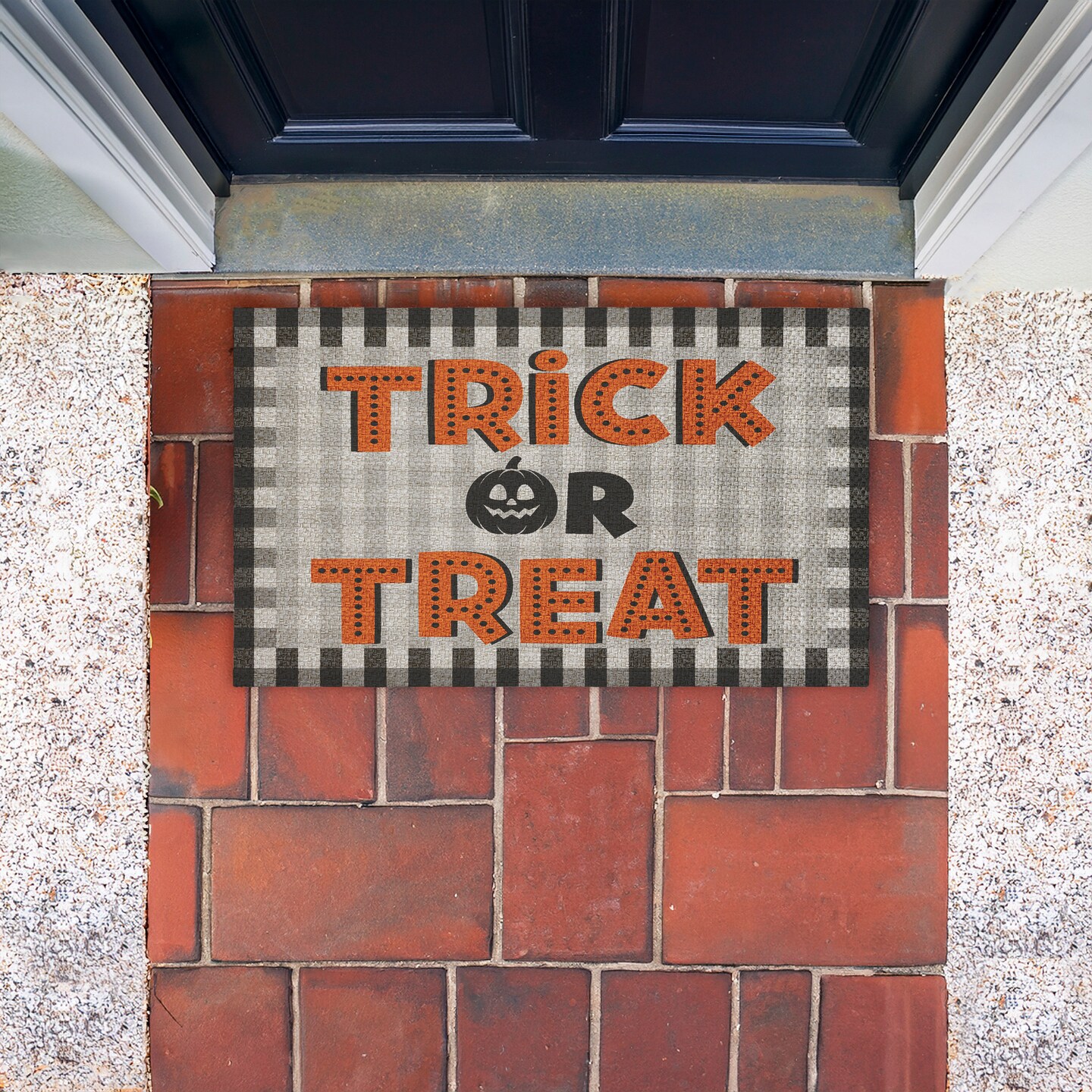 Stupell Industries Trick Or Treat Gingham Outdoor Door Mat, design by Marcus Prime, 18"x30"