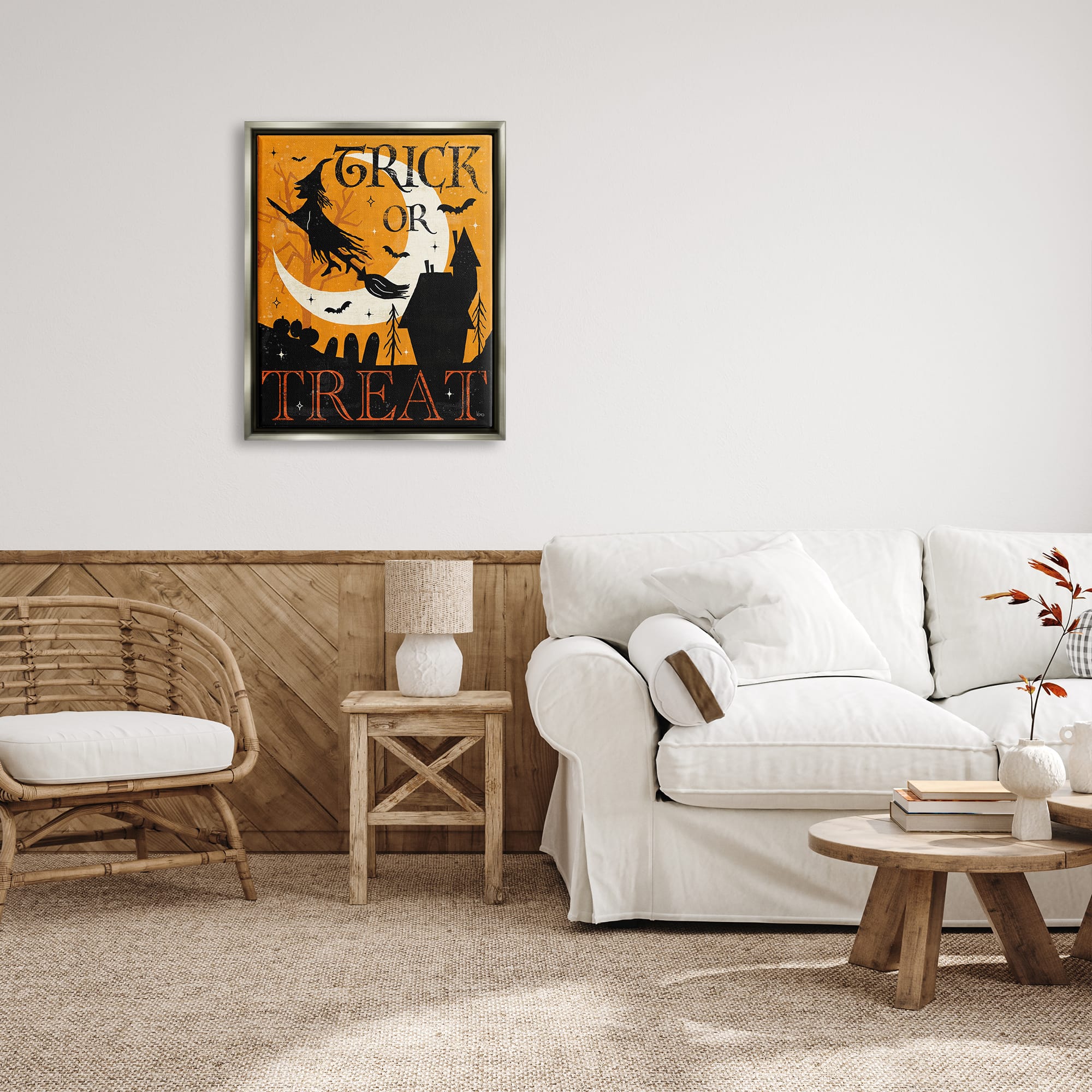 Stupell Industries Trick or Treat Halloween Witch Framed Floater Canvas Wall Art