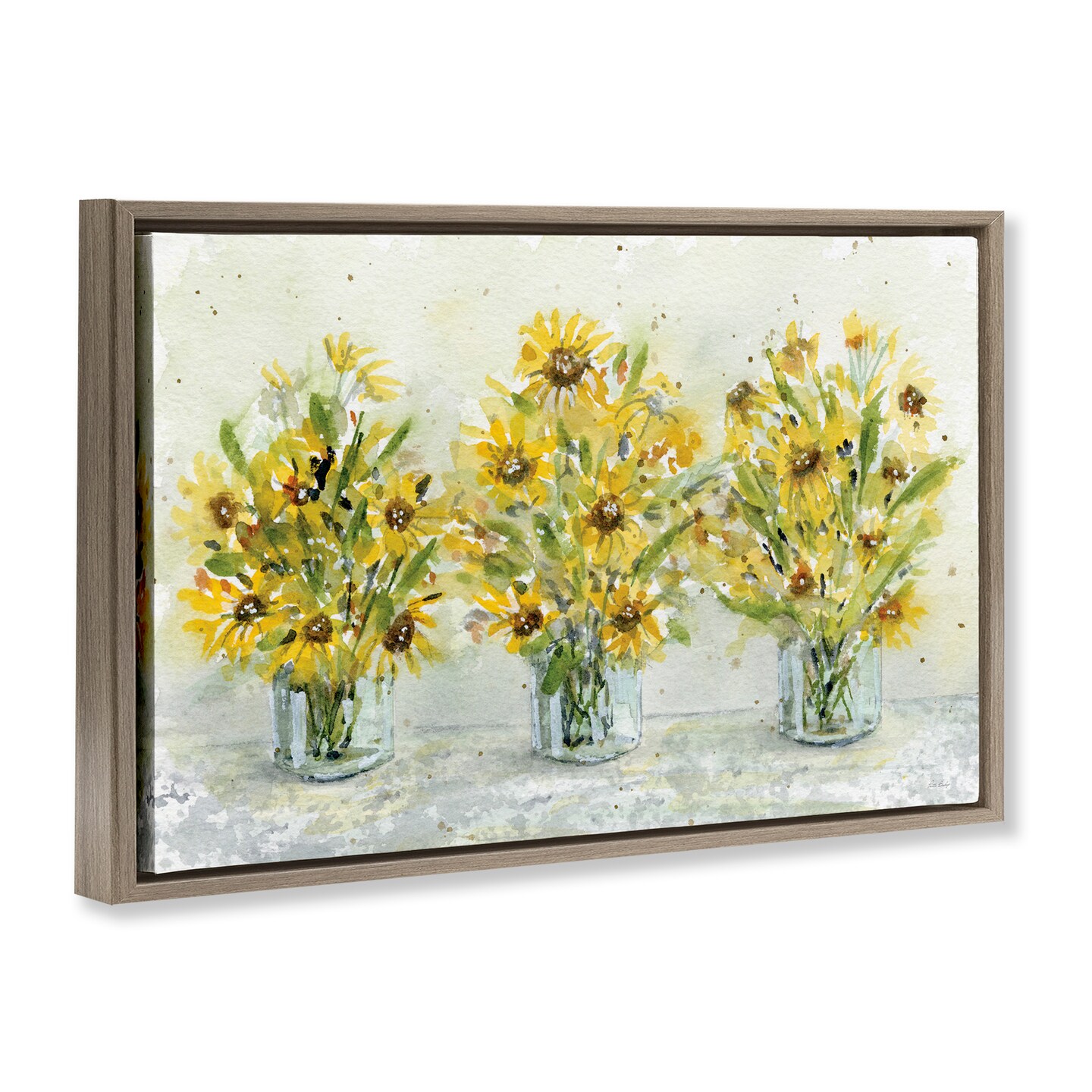 Stupell Industries Trio of Sunflower Vases Floating Frame, design by Patti Bishop