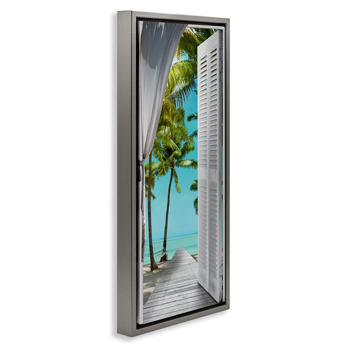 Stupell Industries Tropical Beach Villa View Framed Floater Canvas Wall Art Design by Reinders