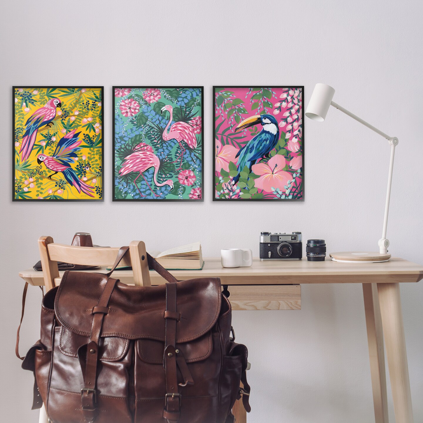 Stupell Industries Tropical Birds & Botanicals 3pc Framed Giclee Wall Art Set Design by Yvette St. Amant